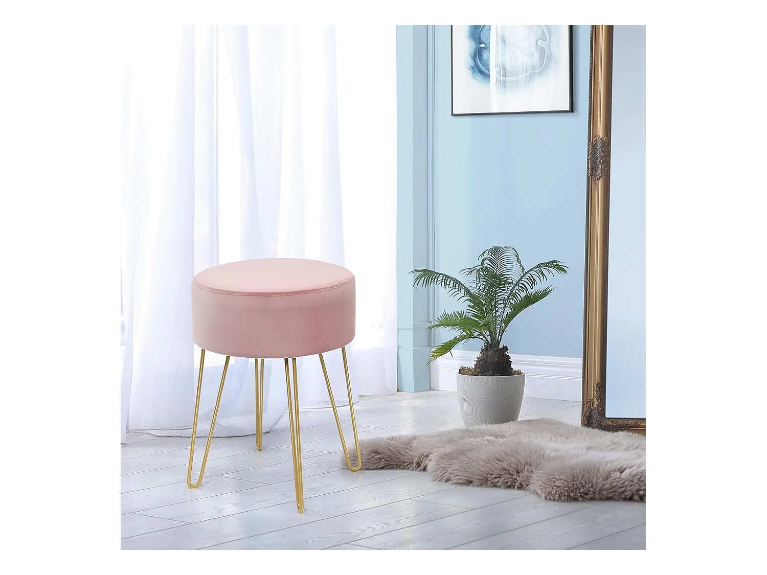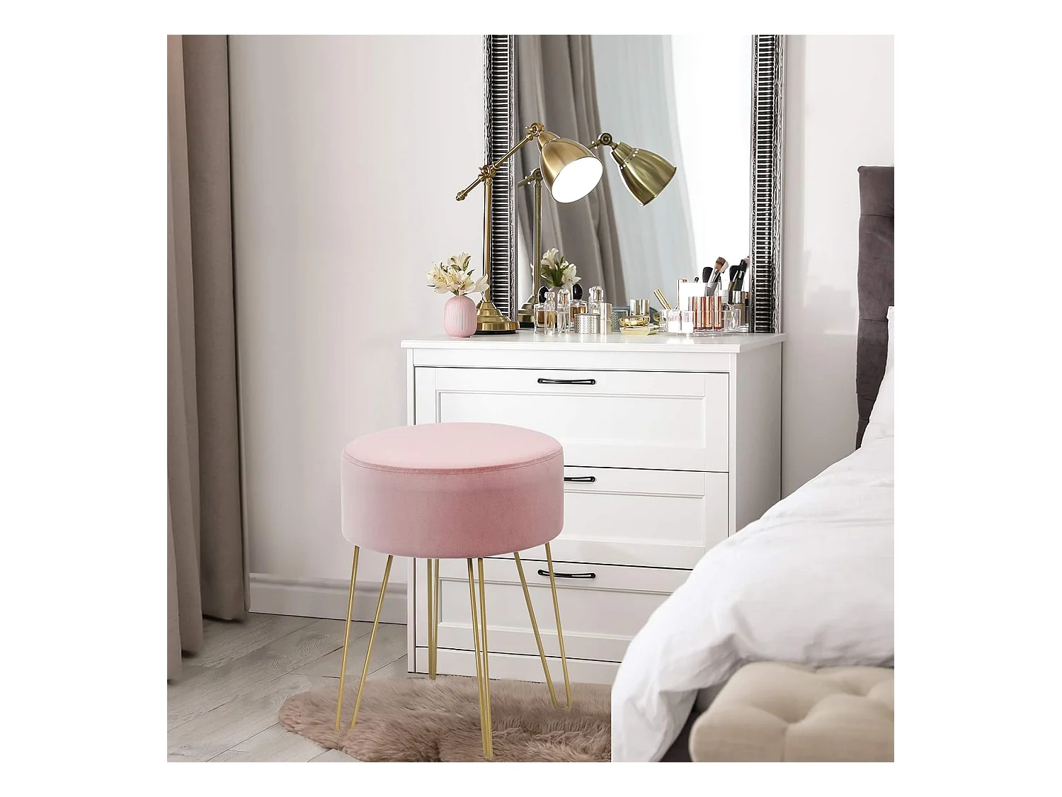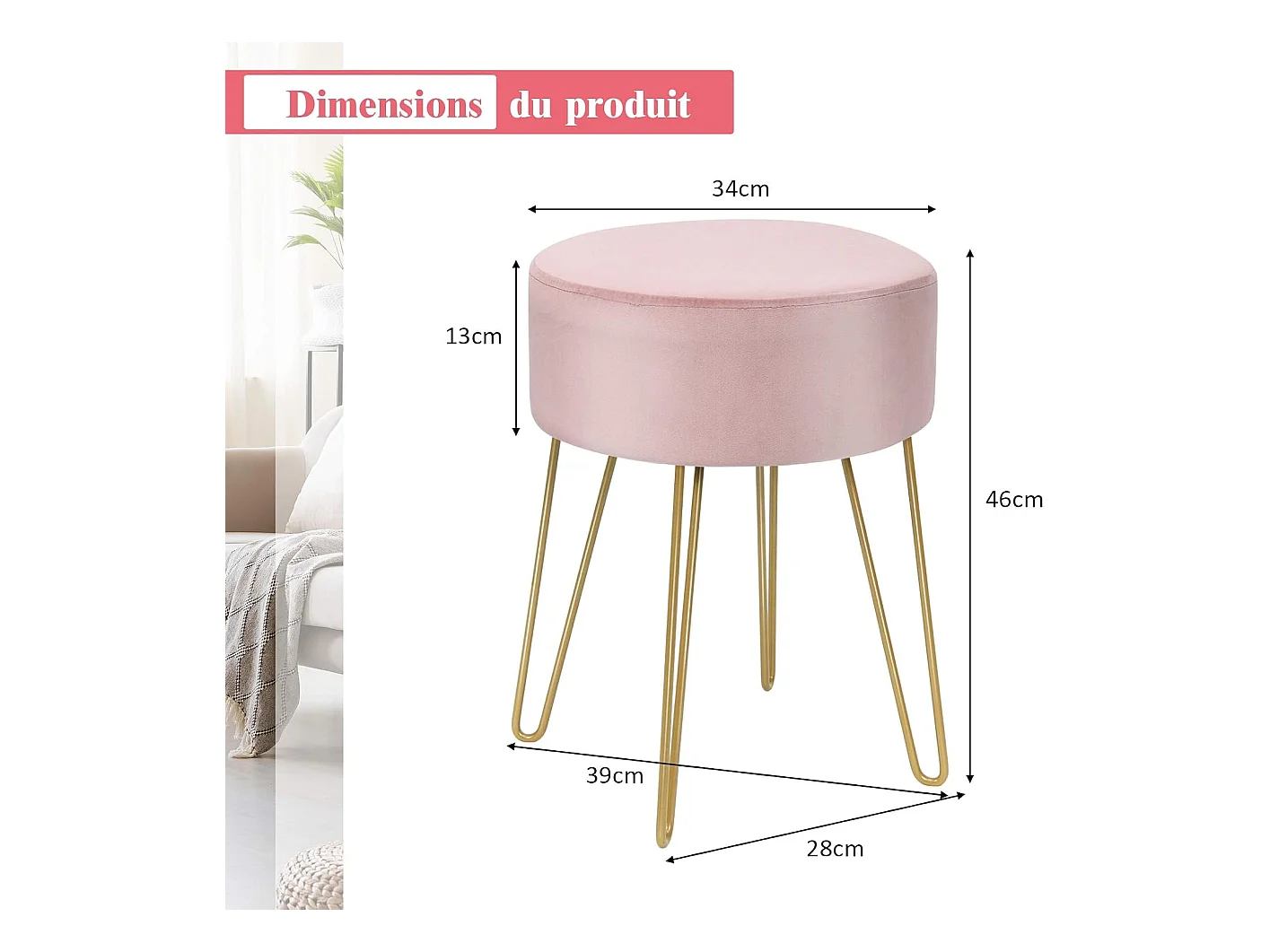 Pouf Tabouret Rond Ø39cm, en Velours avec Pieds Métalliques Robustes, Idéal pour Salon ou Chambre