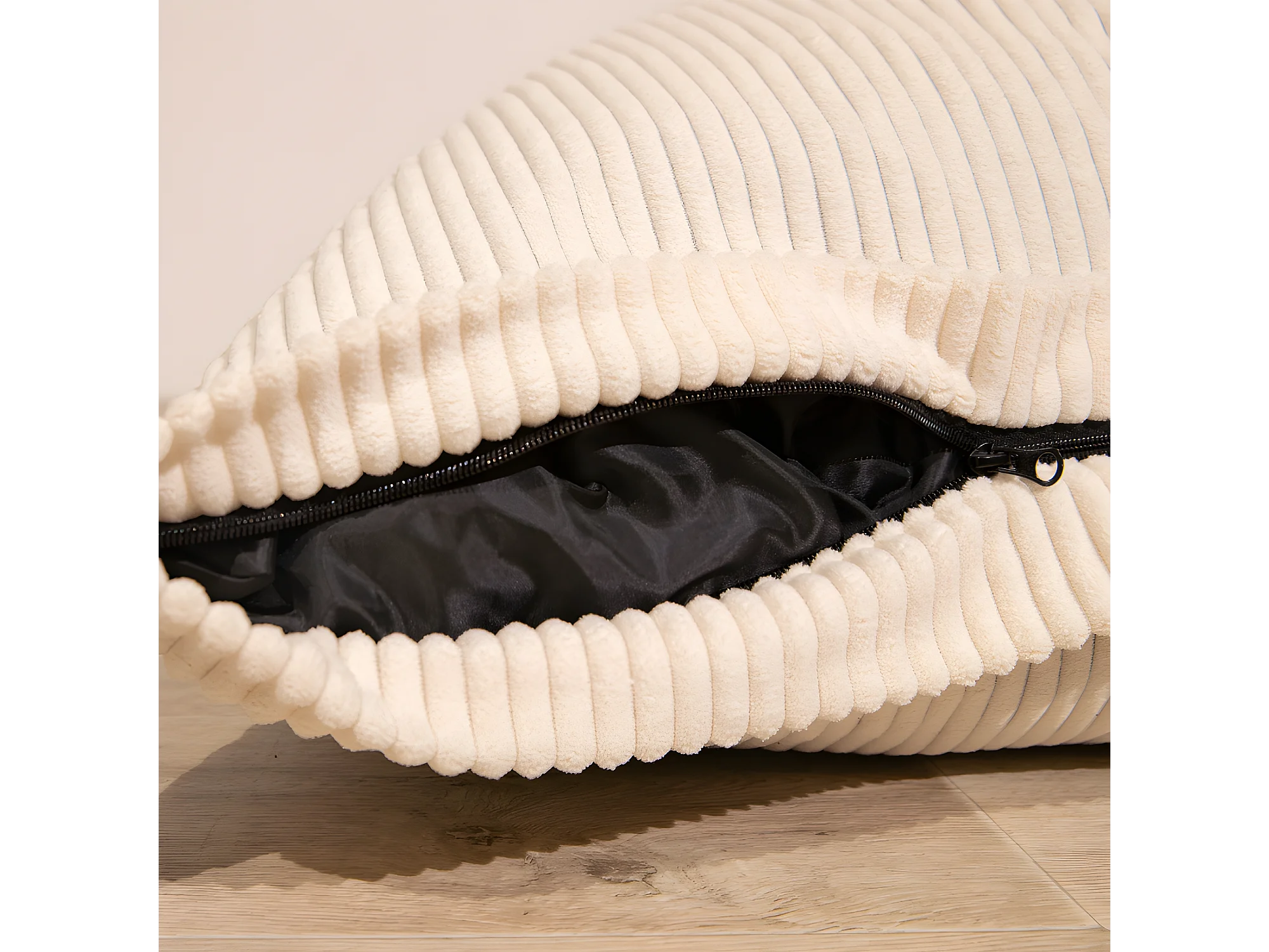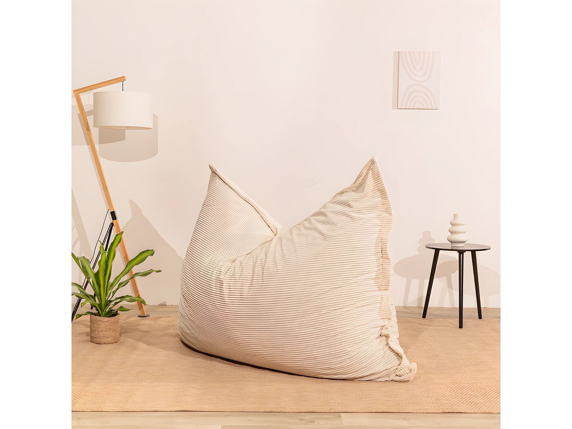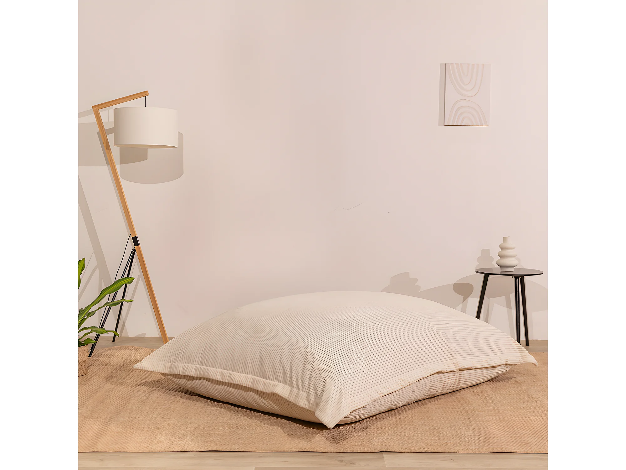 Pouf velours côtelé déhoussable blanc cassé 180 x 140 cm
