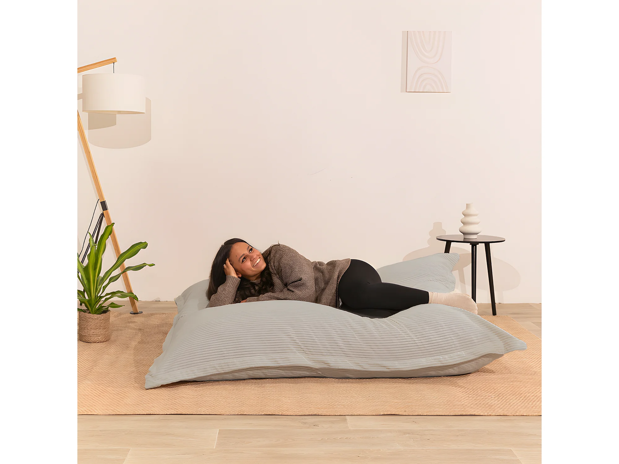 Pouf velours côtelé déhoussable gris clair 180 x 140 cm