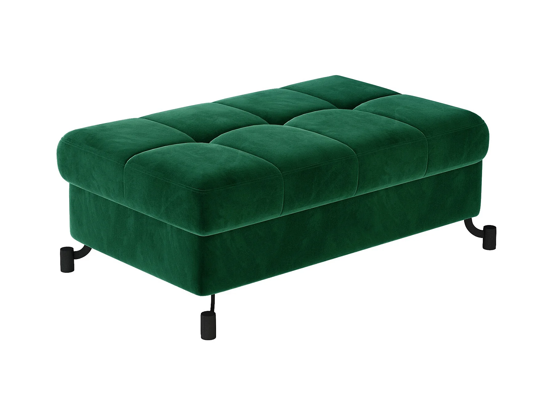 Pouf velours matelassé vert foncé avec coffre de rangement Lory 100cm