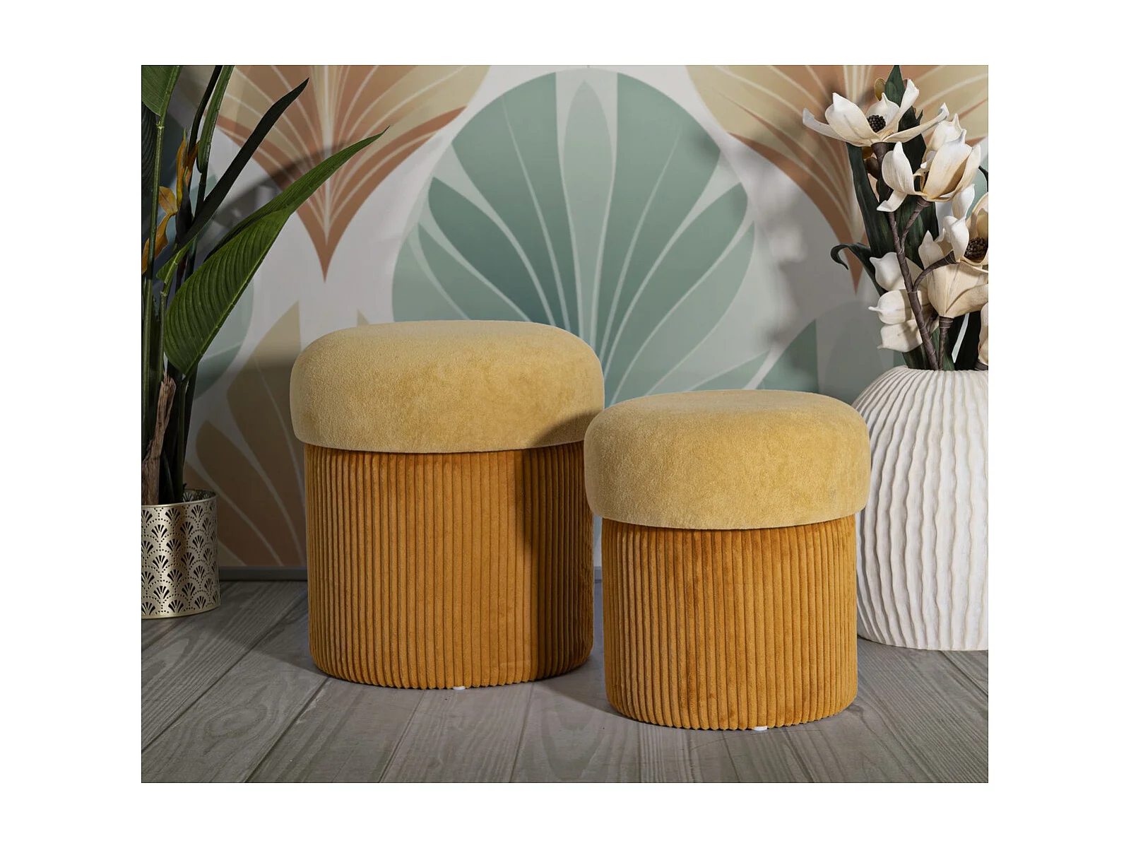 Pouf VKH722, Jaune, 44x42x42 cm, Kendra Home