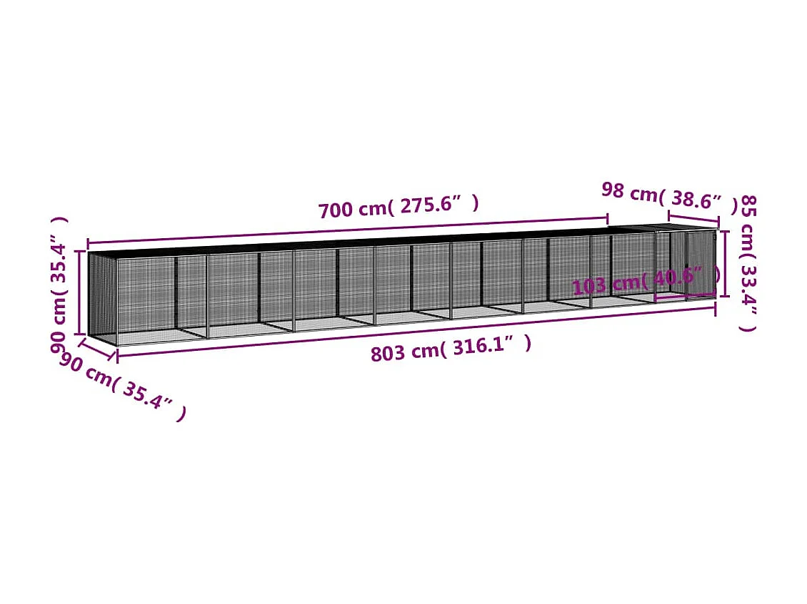 Poulailler avec toit anthracite 803x98x90 cm acier galvanisé