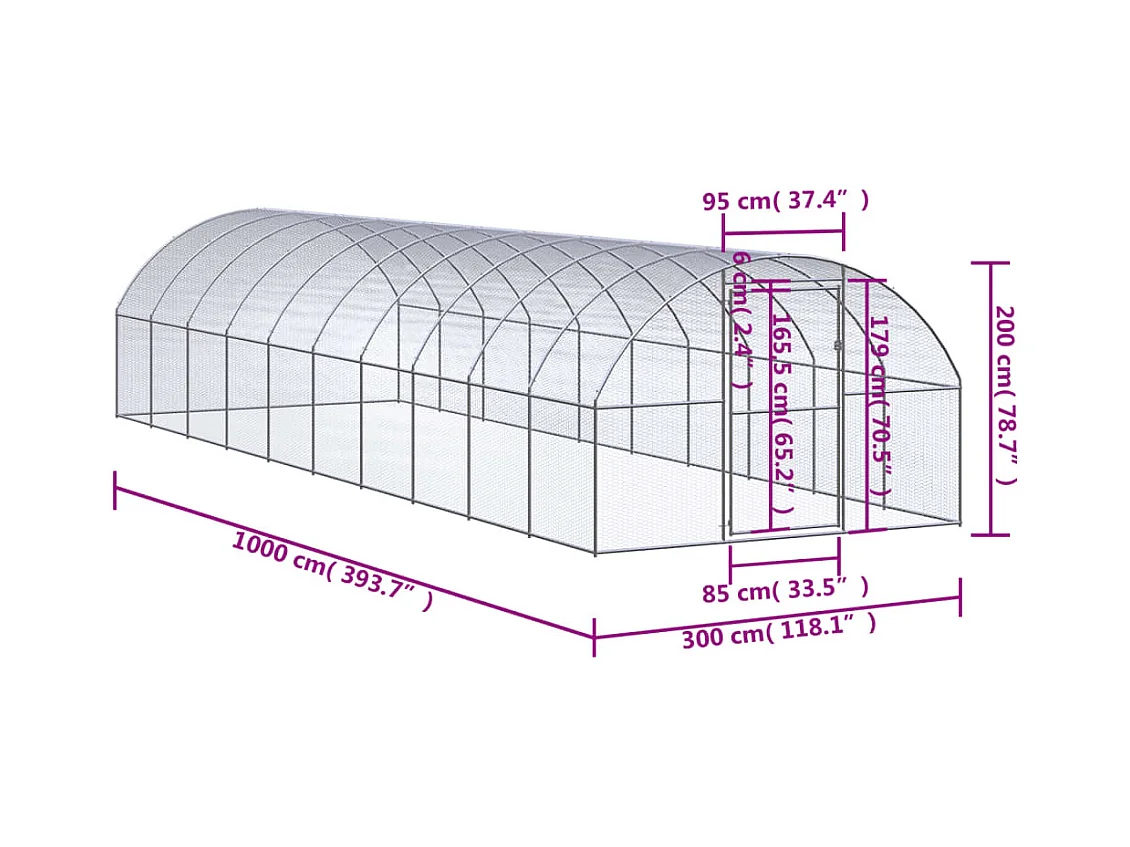 Poulailler d'extérieur 3x10x2 m Acier galvanisé