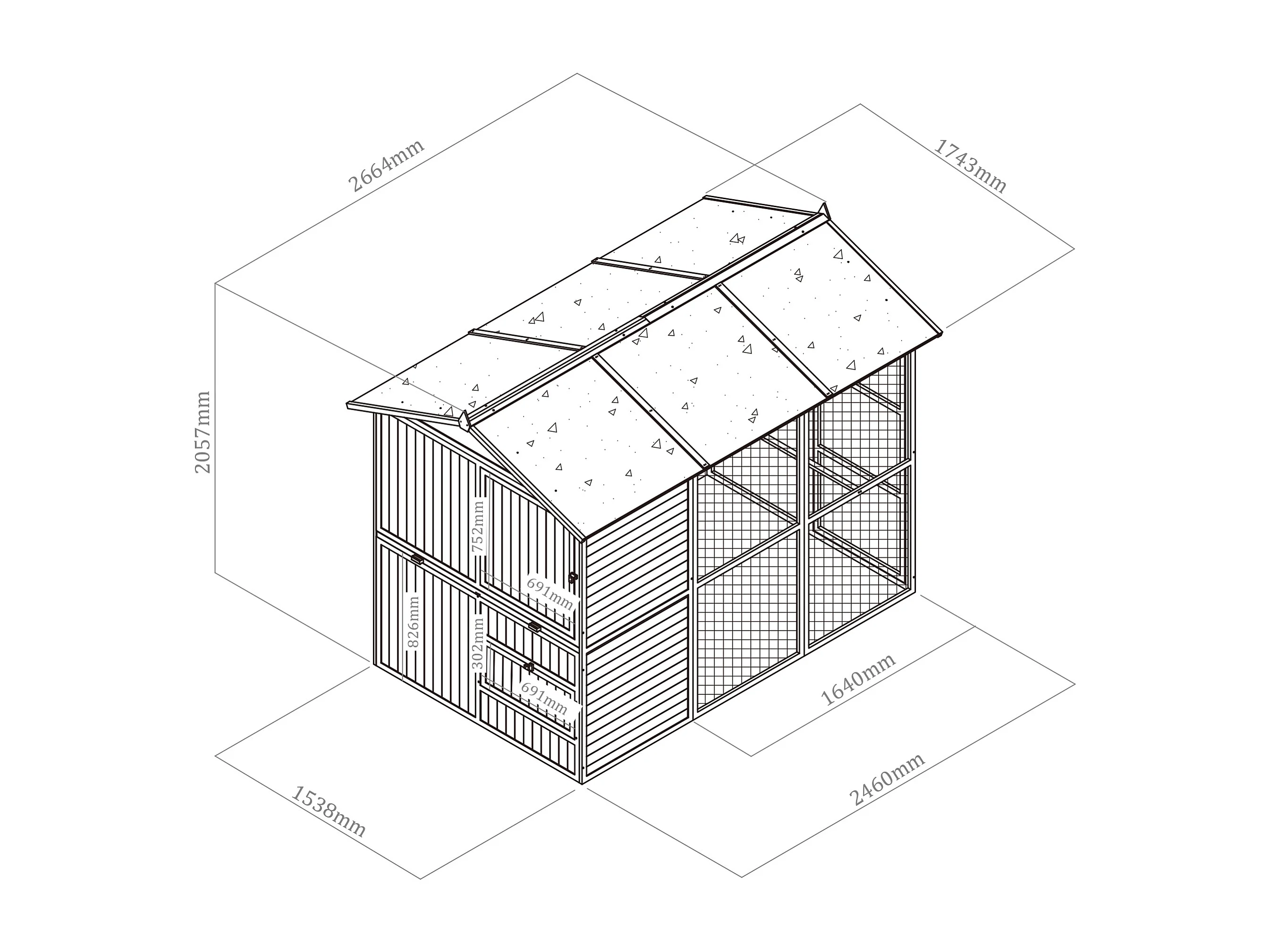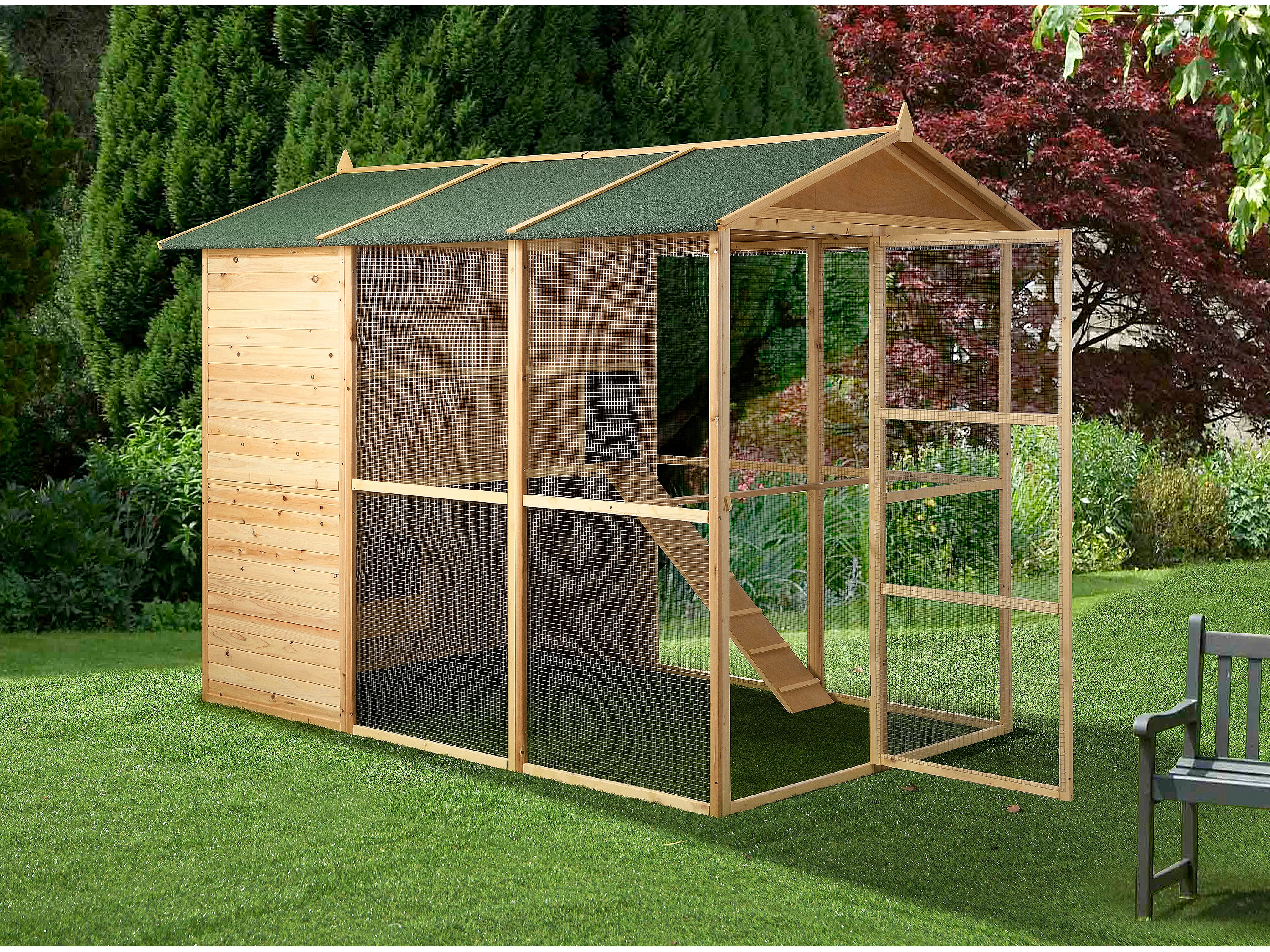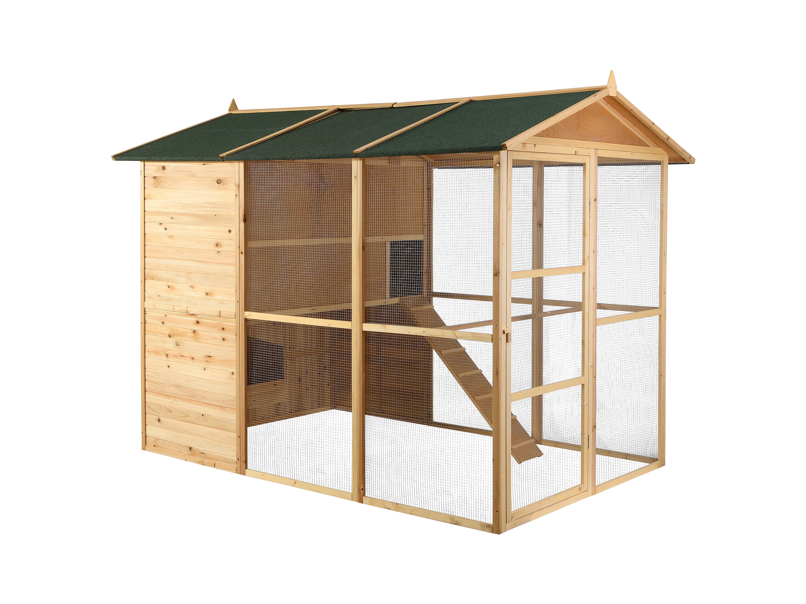 Poulailler en bois avec enclos - 10 poules - L. 266 x P. 174 x H. 205 cm - Naturel - FERAS