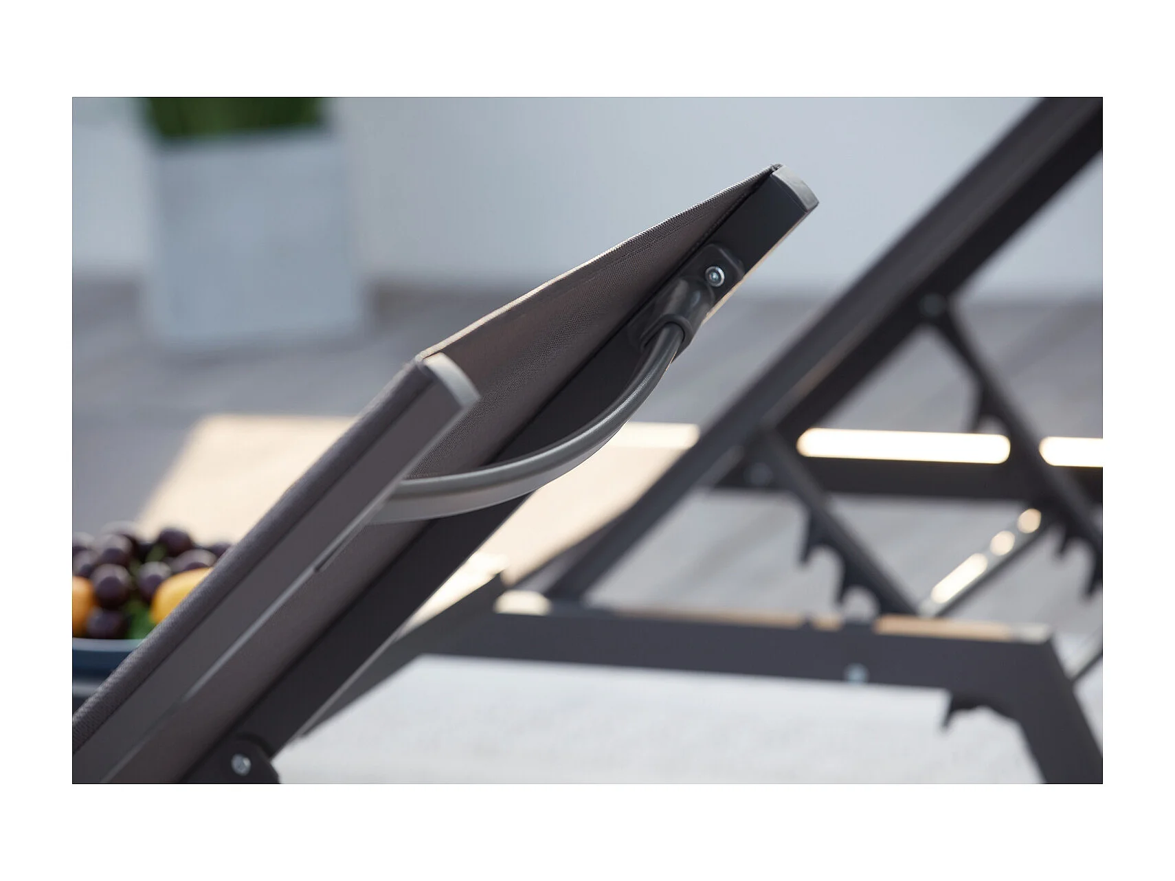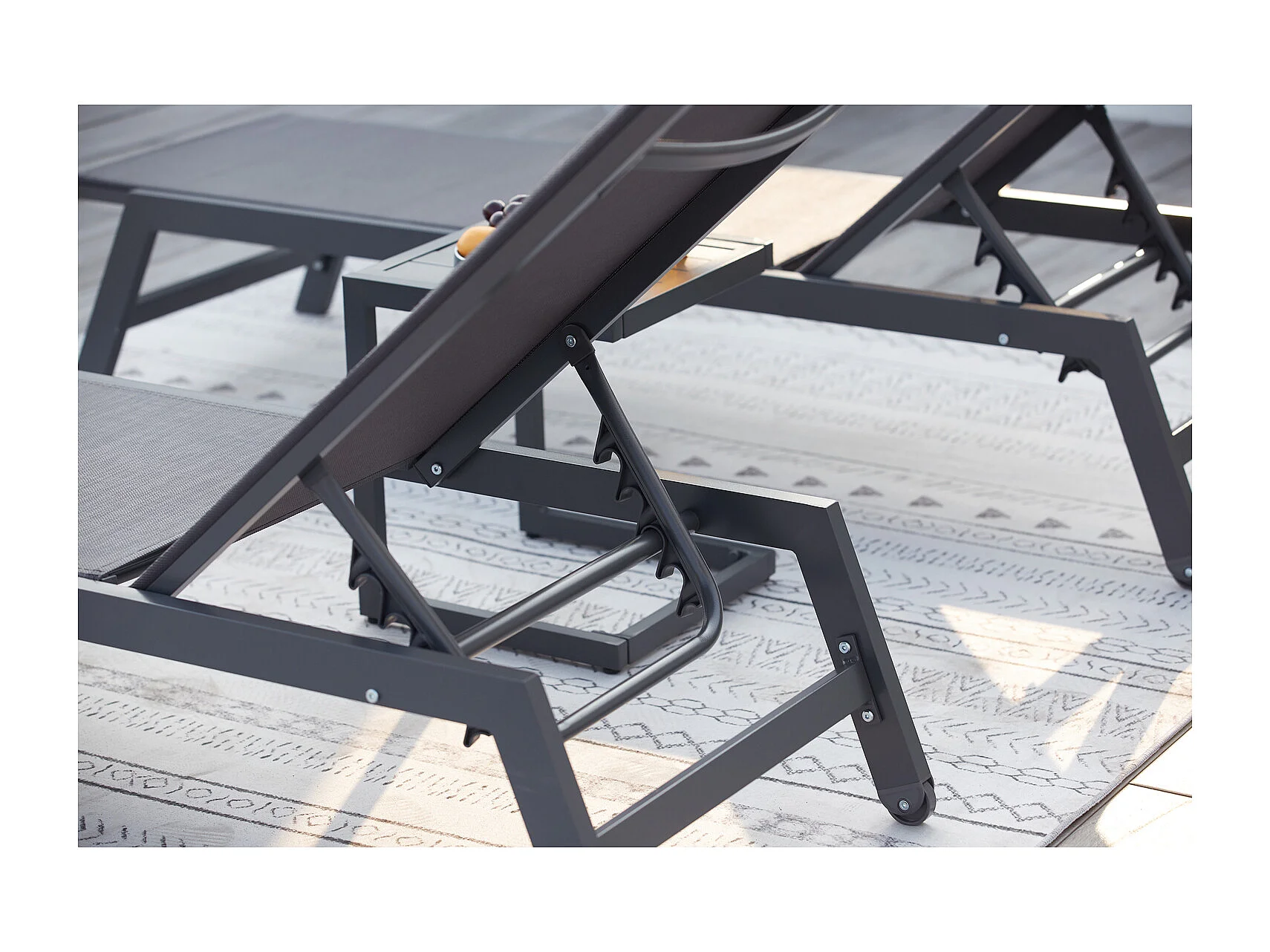 Lot de 2 transats et une table d'appoint gris et noir PRATO