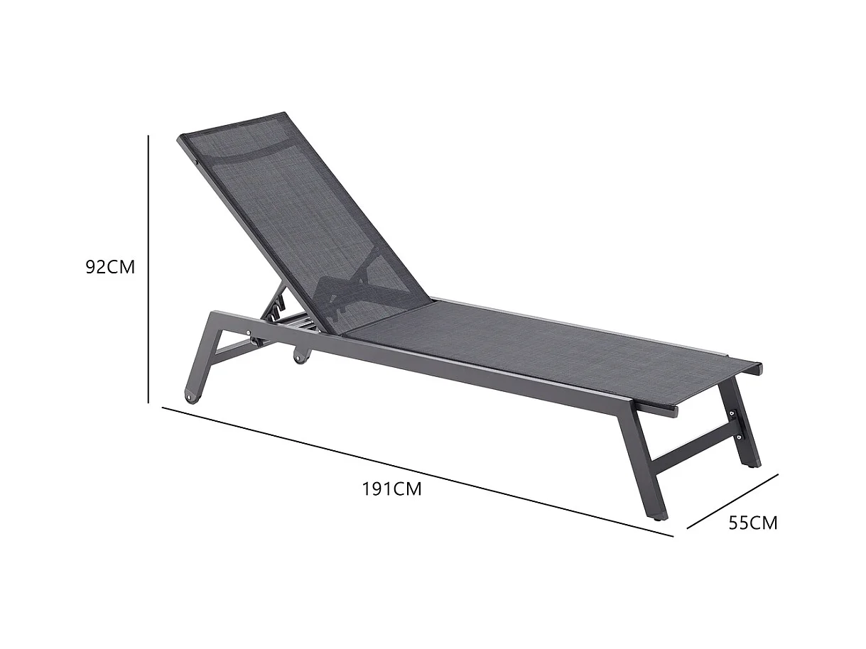 Lot de 2 transats inclinables avec roulettes en aluminium noir CUBA