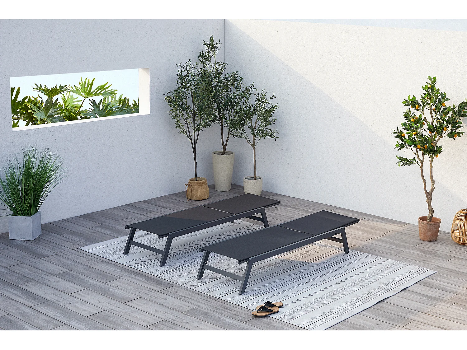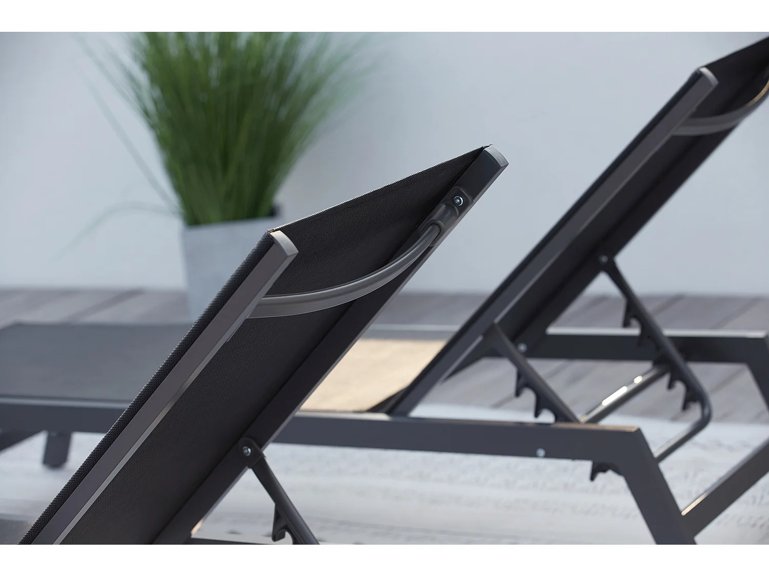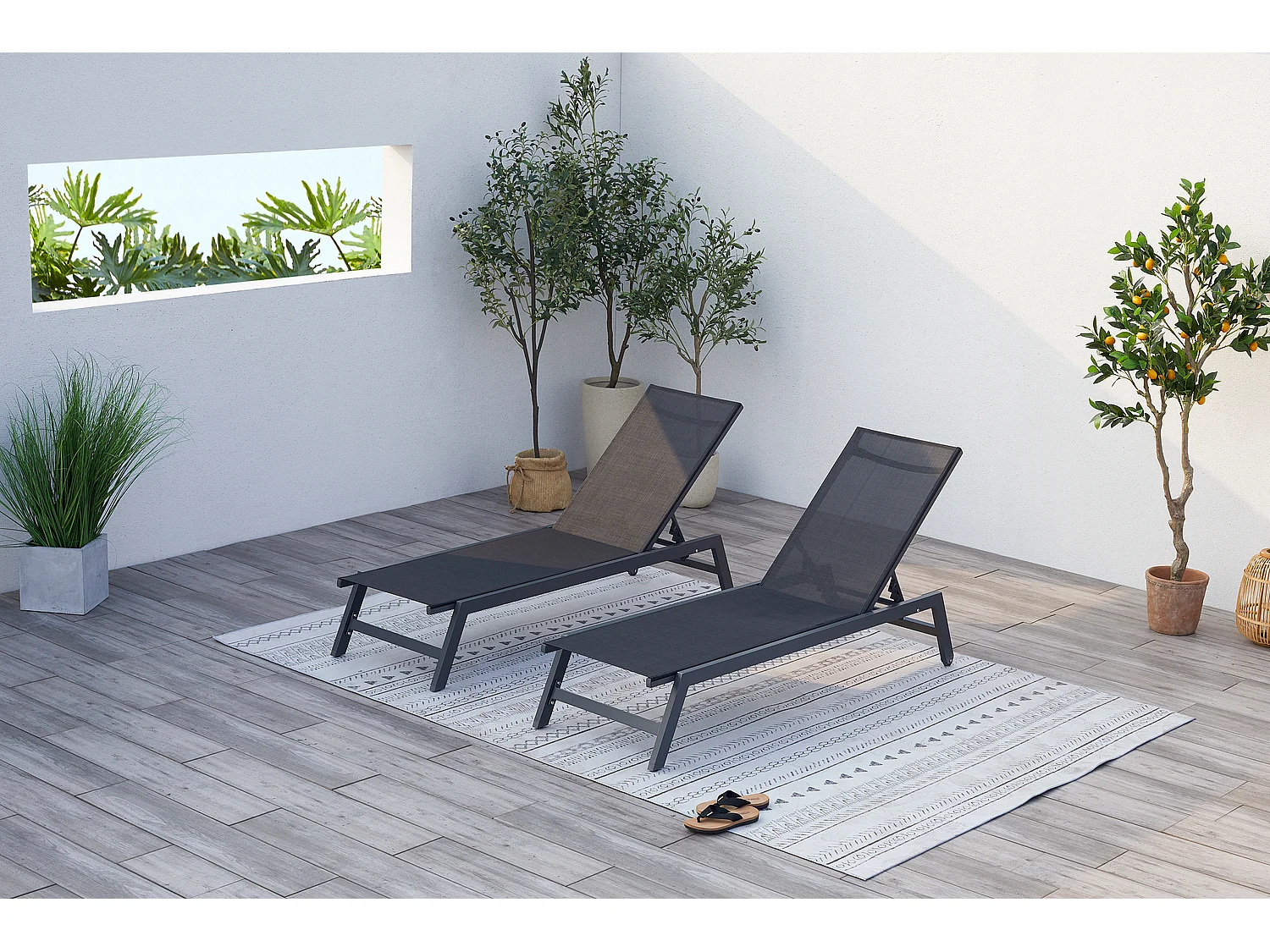Lot de 2 transats avec roulettes gris foncé et noir PRATO
