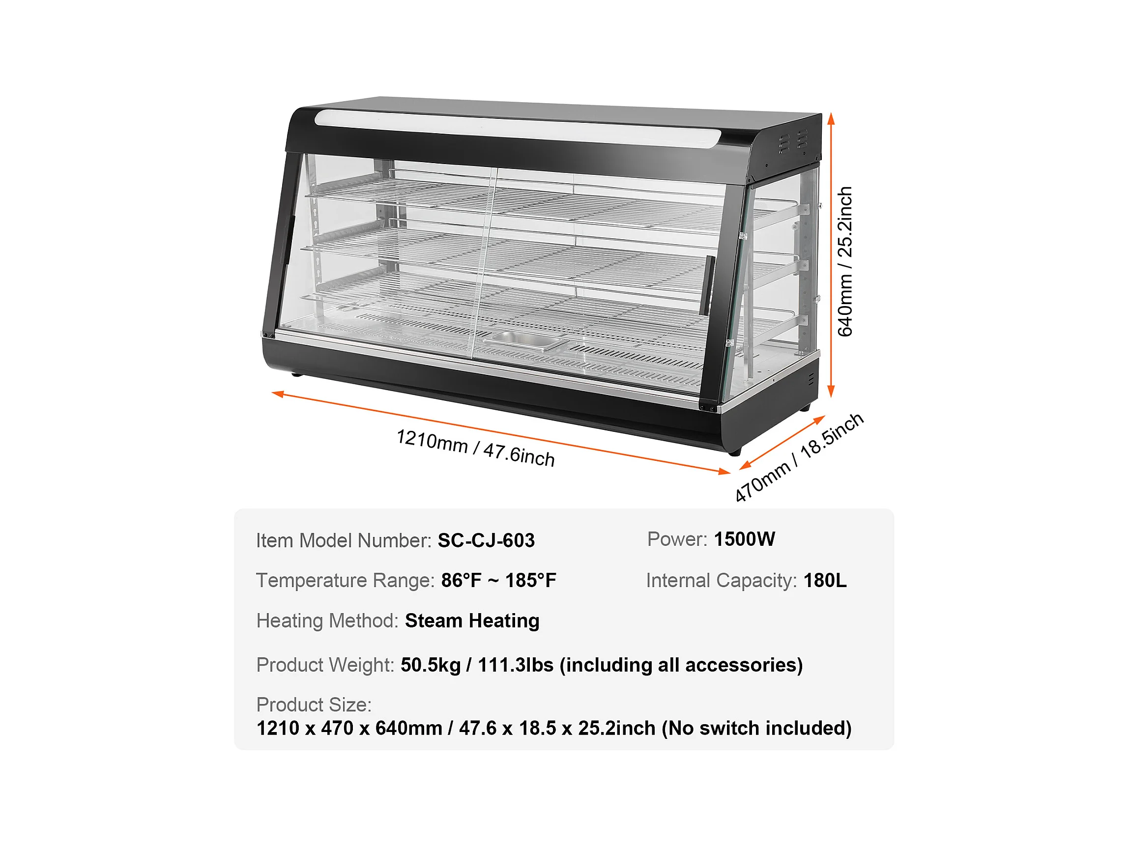 Vitrine Chauffante SucceBuy, Présentoir Chauffant pour Pizza 36 cm, Réchaud Électrique Commercial à 4 niveaux