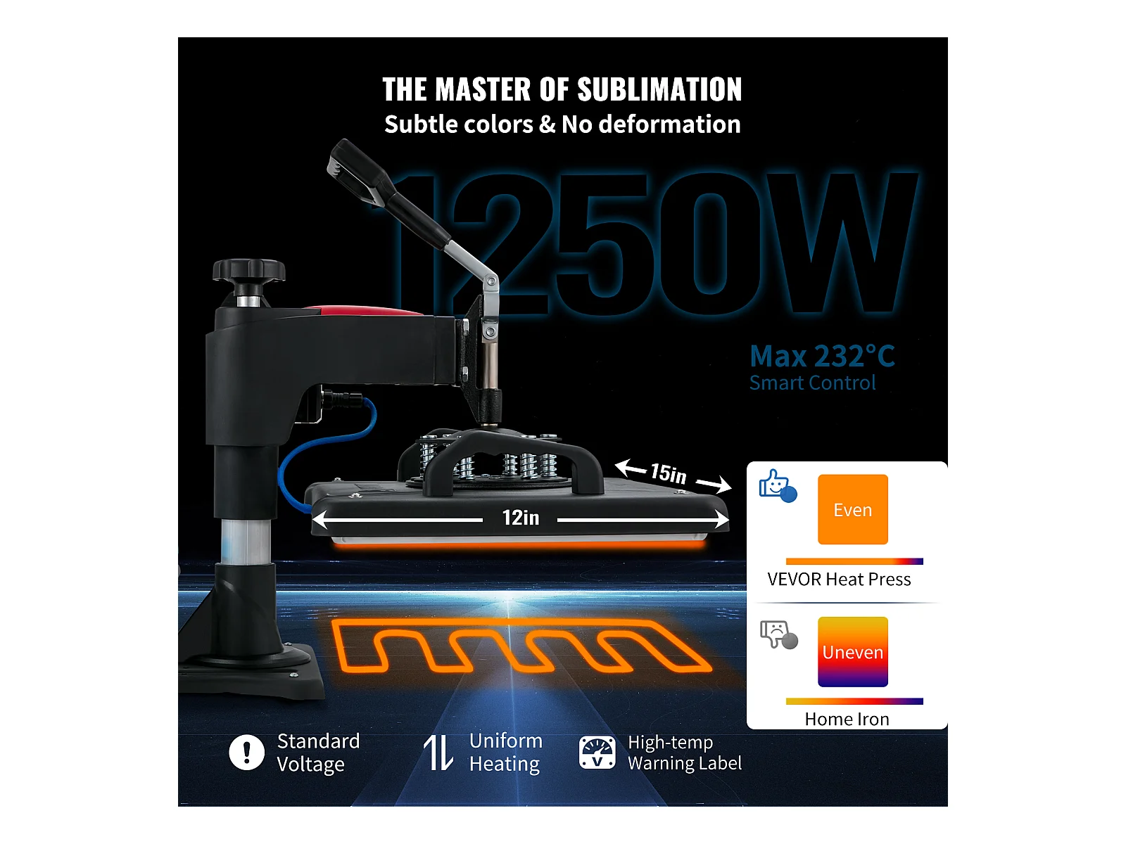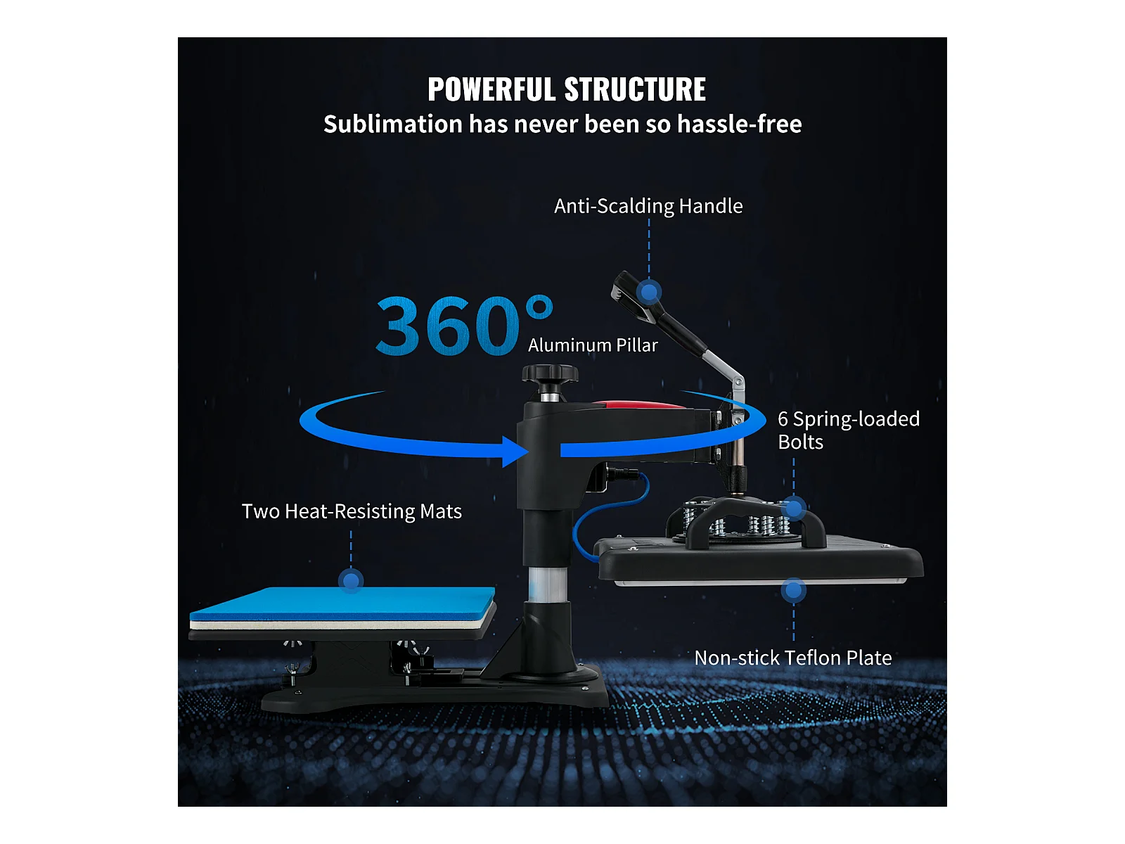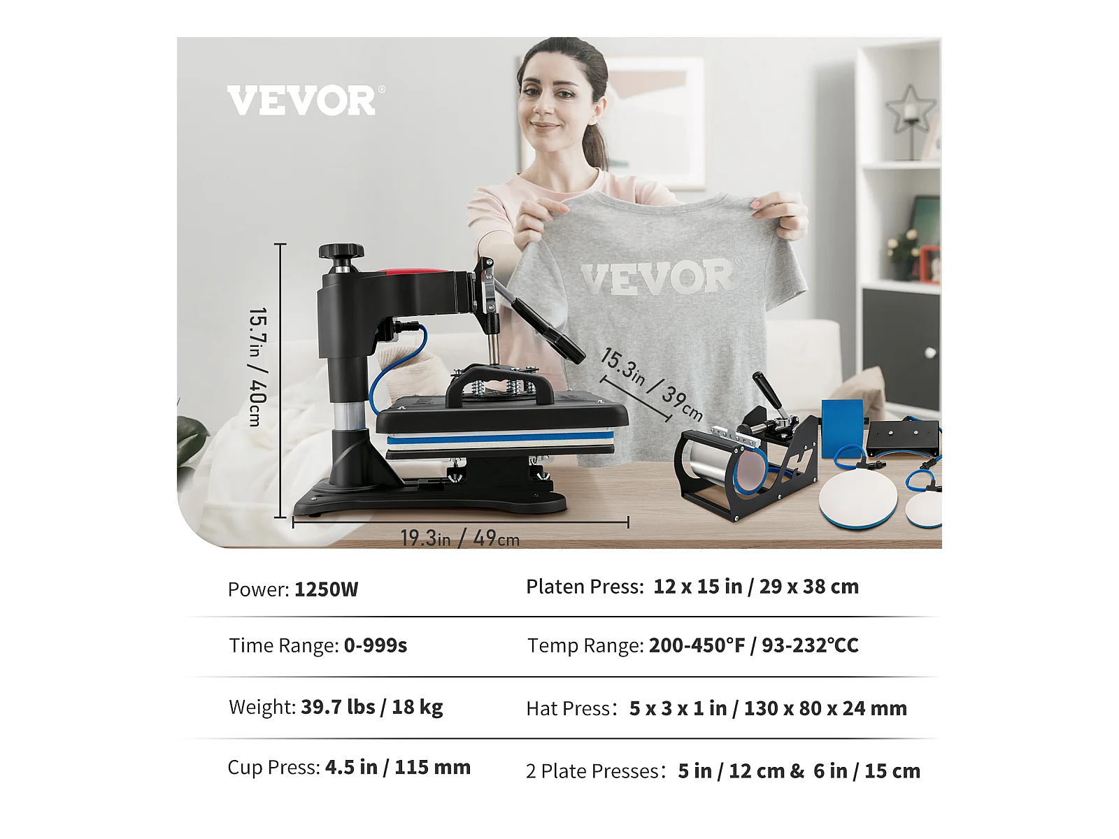 Presse à Chaud SucceBuy 12x15 pouces 5 en 1 pour Transfert par Sublimation - T-shirt, Assiette, Tasse à Café, Tasse