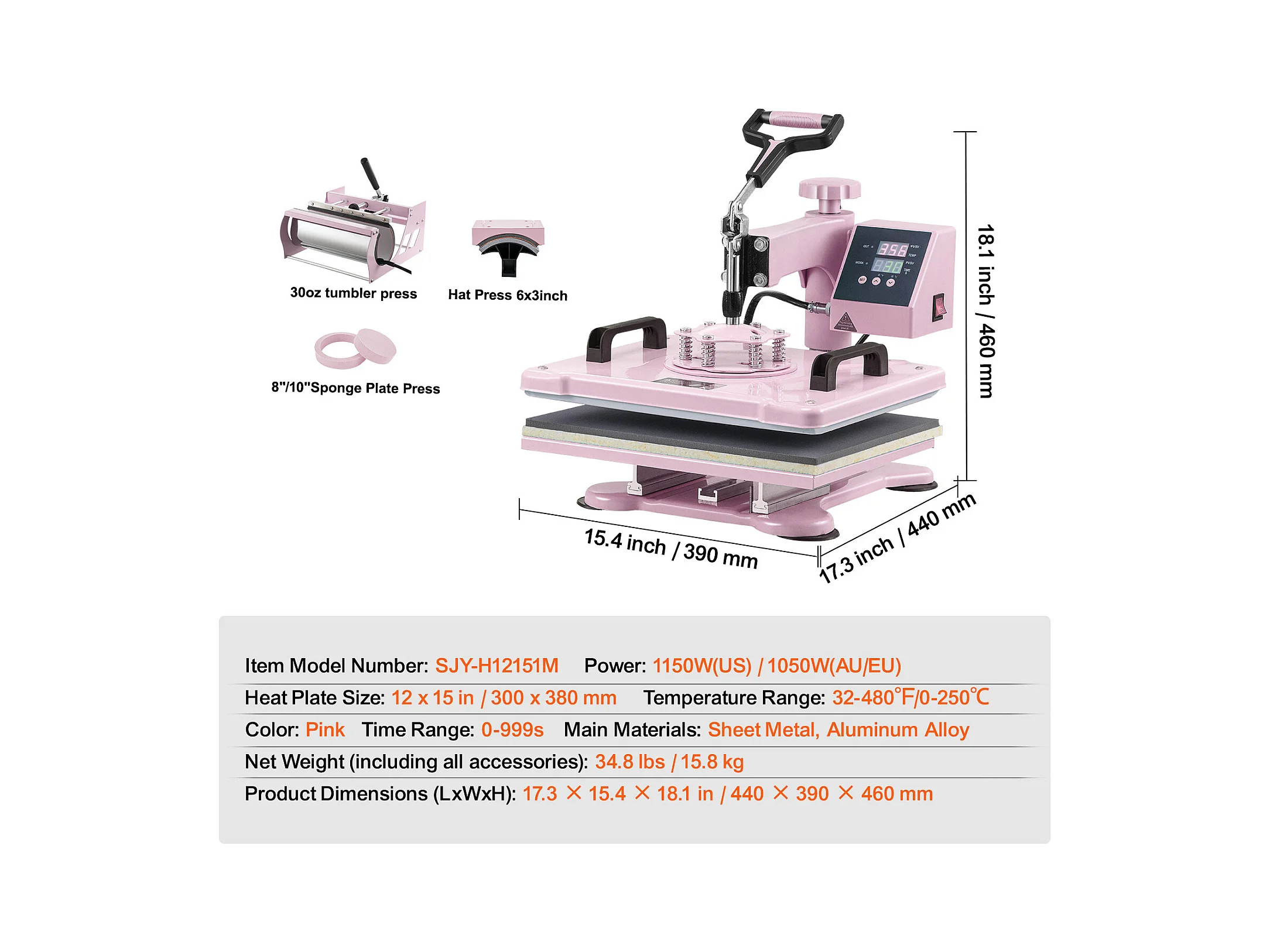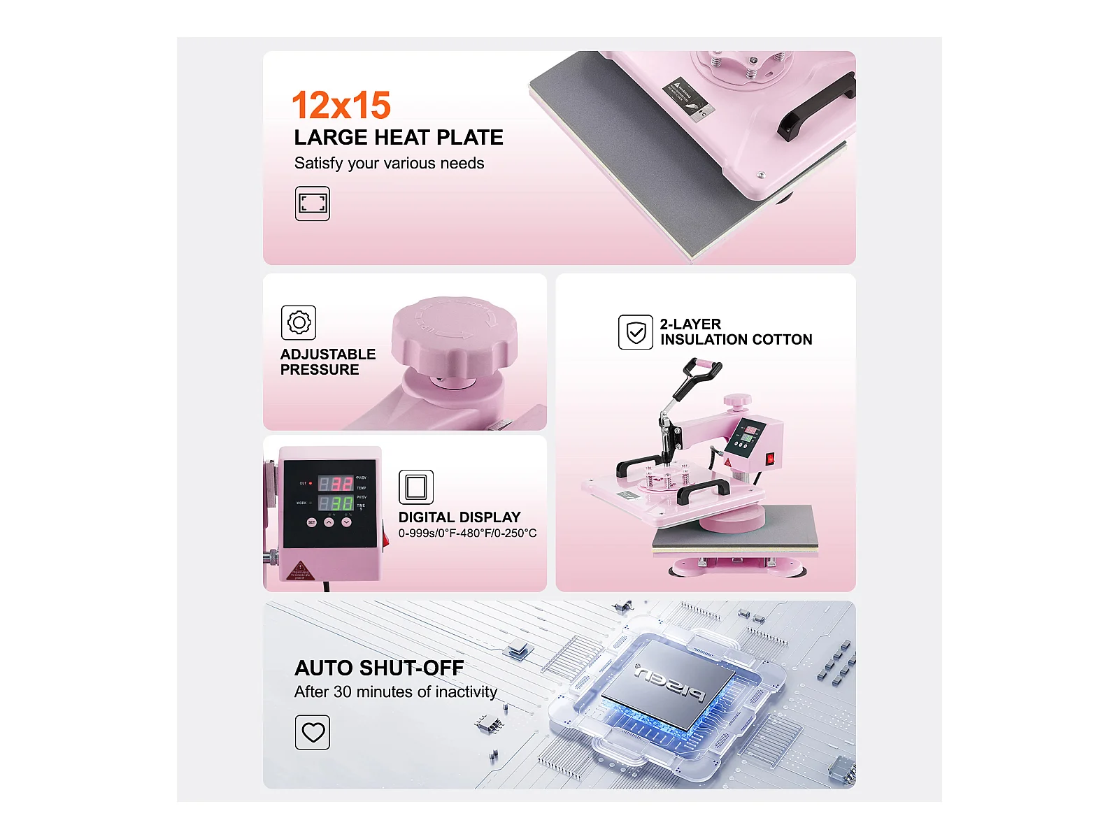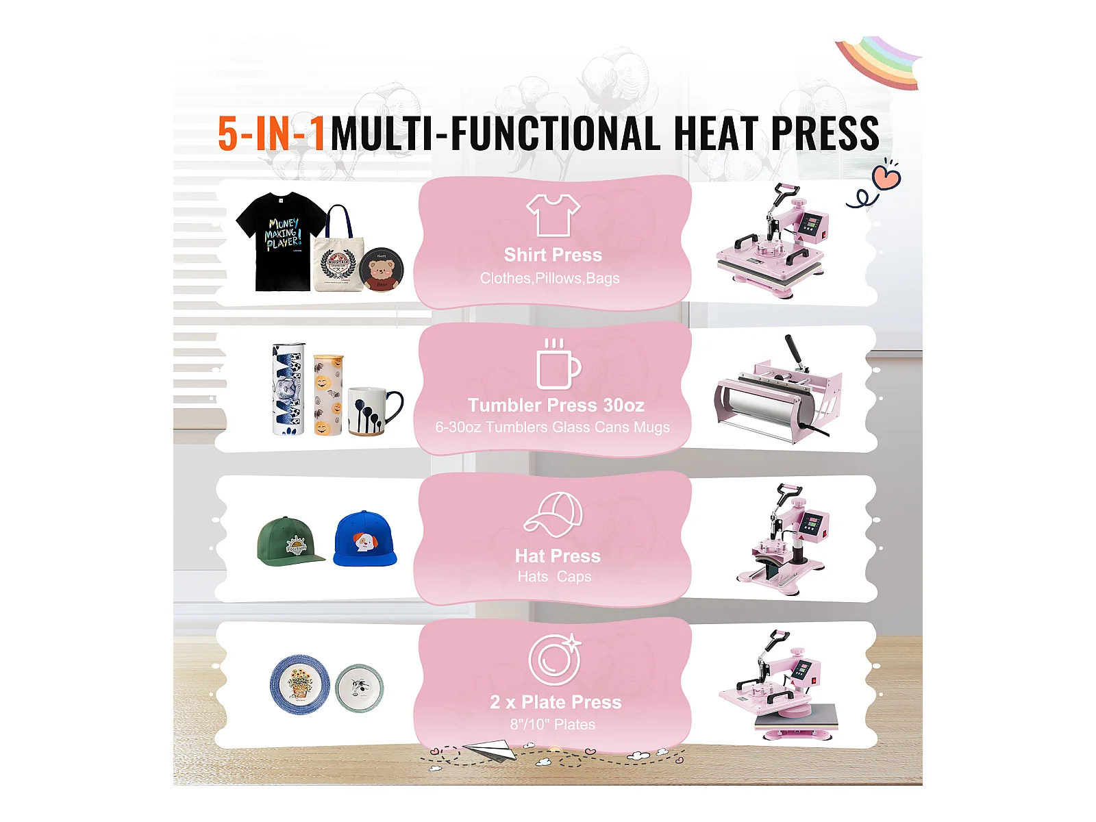 Presse à Chaud SucceBuy Presse à Chaud 5 en 1, 30.5 x 38.1 CM , Rose