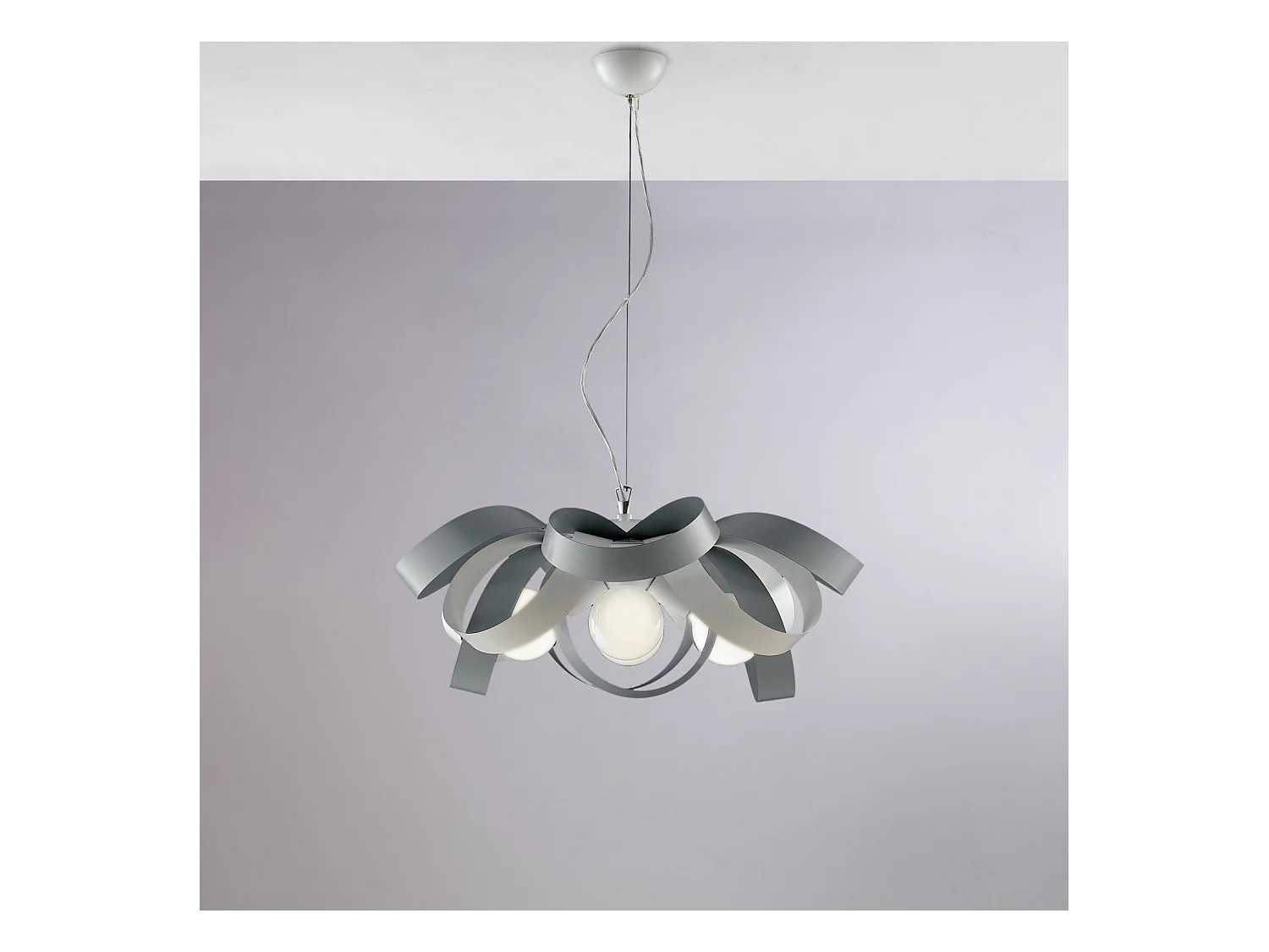 Primula Suspension en fer laqué blanc et gris avec câble acier orientable 4 lumières 138 d.66 BL145-4-BG