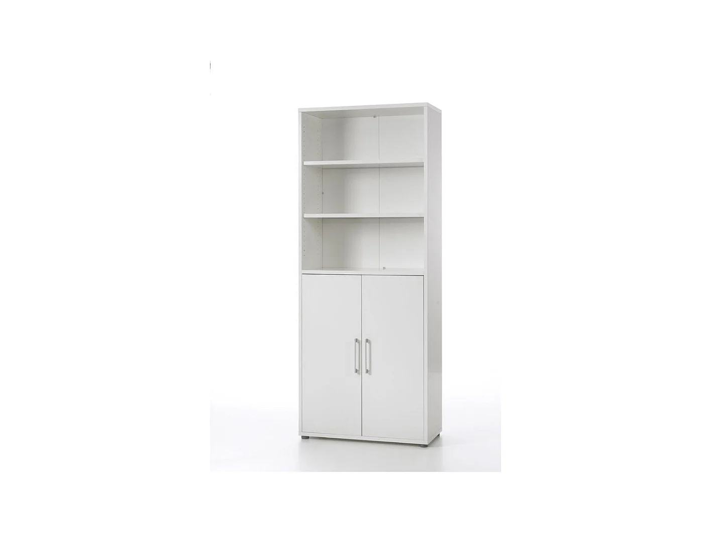 Prisme Armoire de bureau 2 tablettes de rangement, 2 portes, blanc.