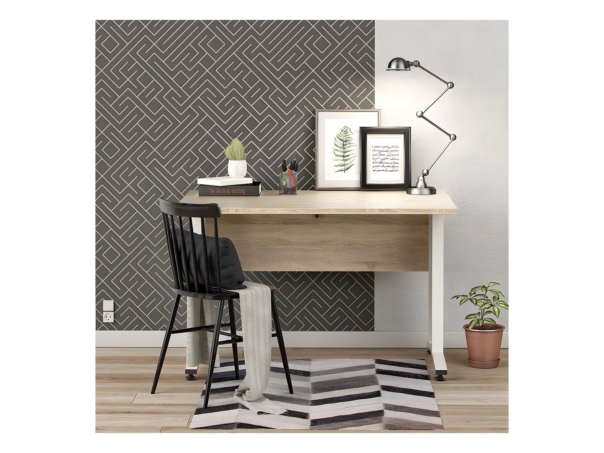Prisme Bureau C, imitation chêne et acier, gris argenté.