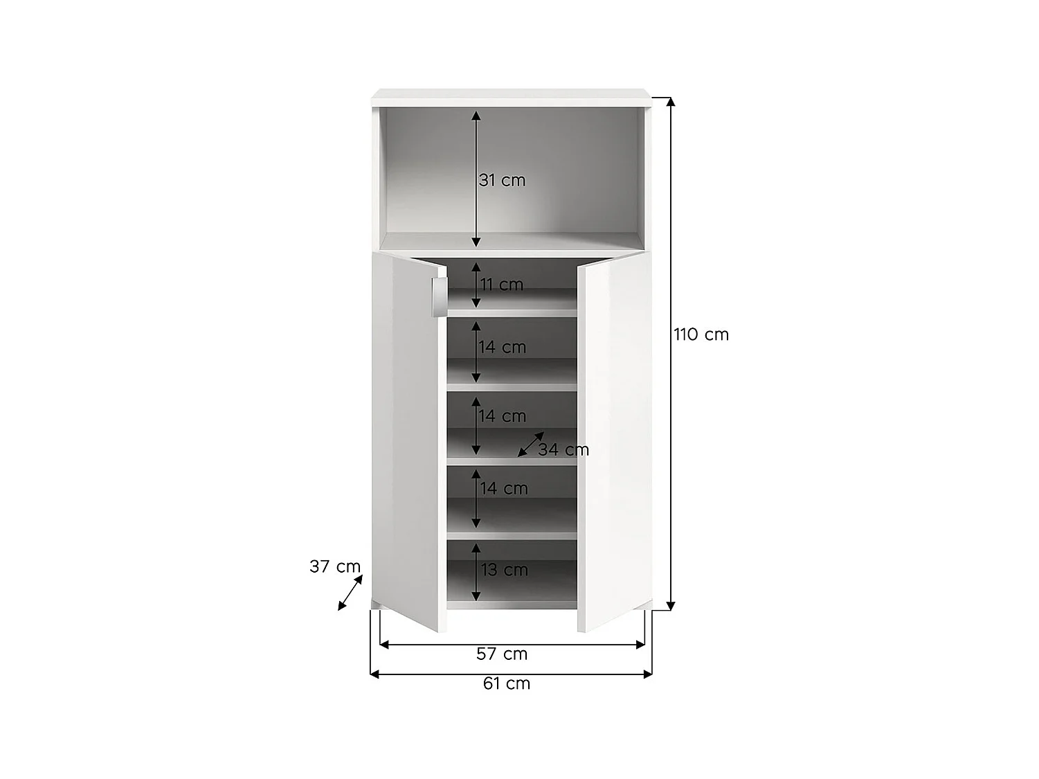 ProjektX meuble à chaussures 2 portes, 1 niche blanc brillant.