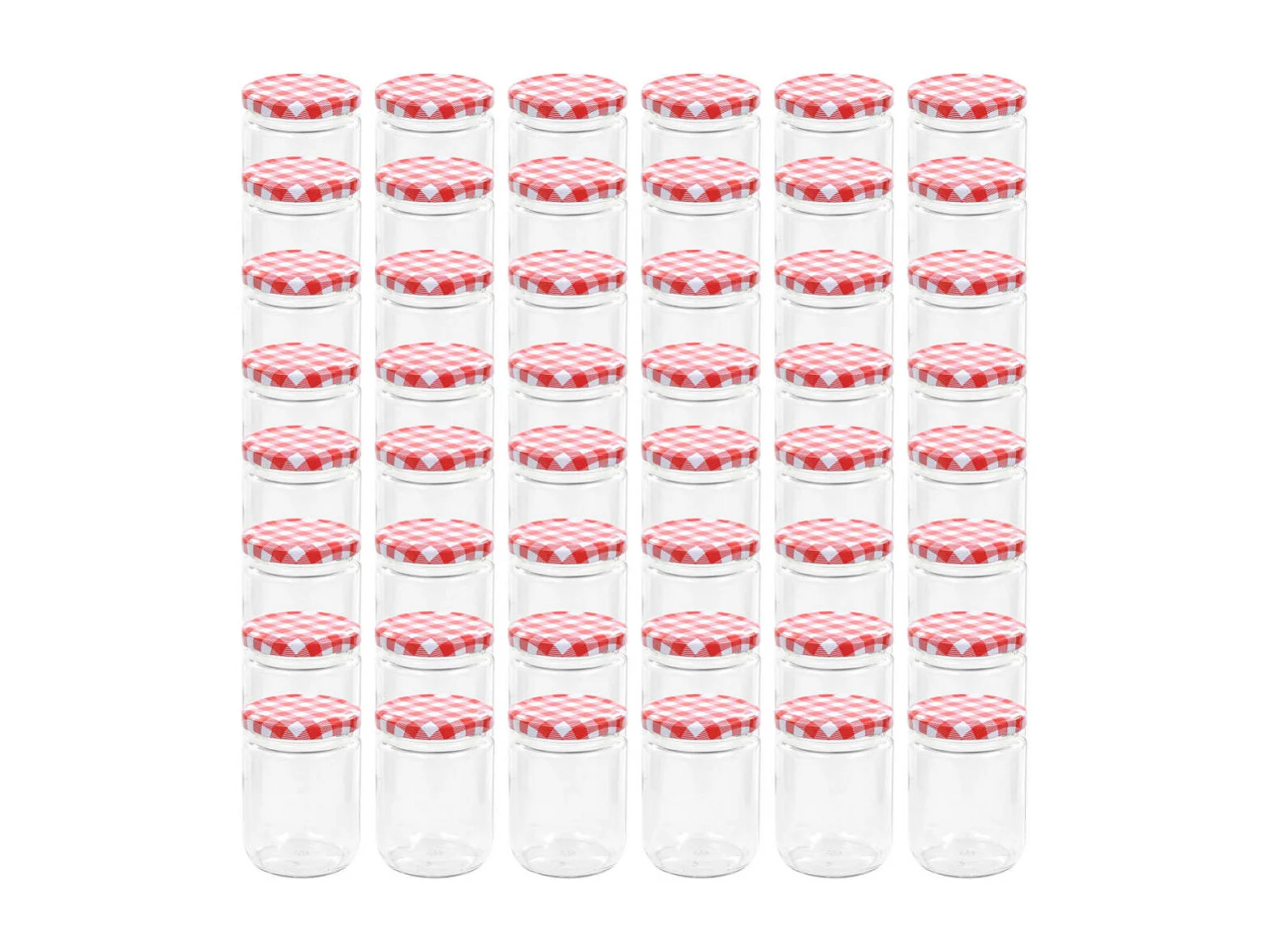 Drew Mason 48 pcs Pots à confiture Couvercle blanc et rouge Verre 230 ml