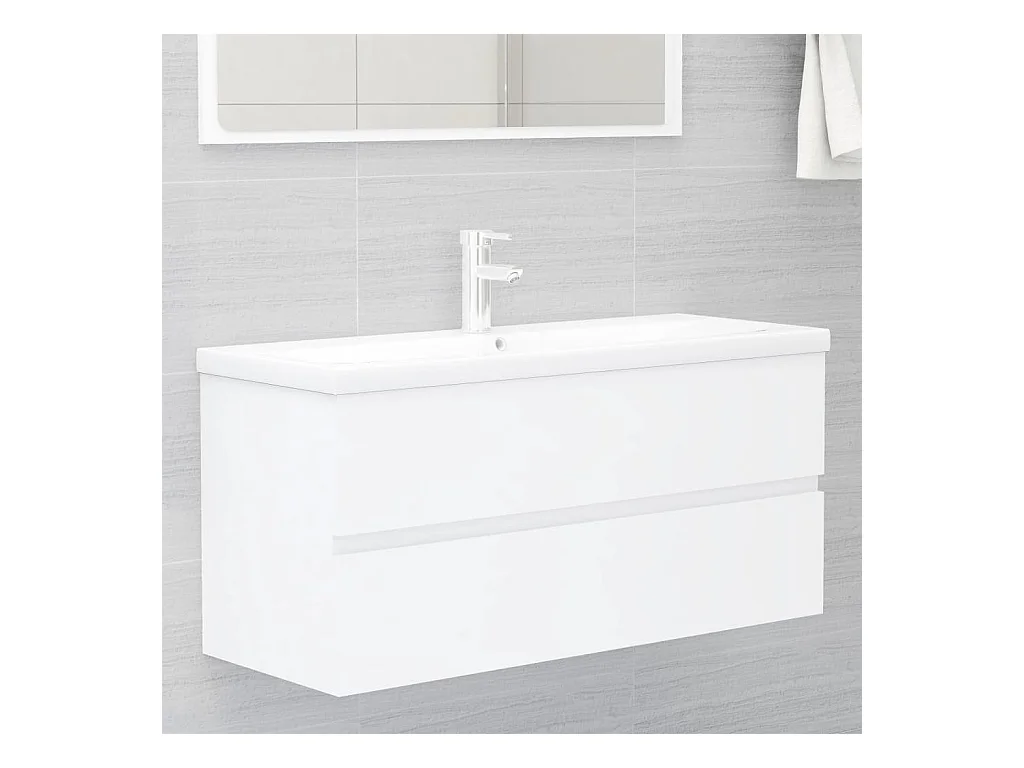 Prolenta Premium - Armoire d'évier avec lavabo intégré Blanc brillant Aggloméré