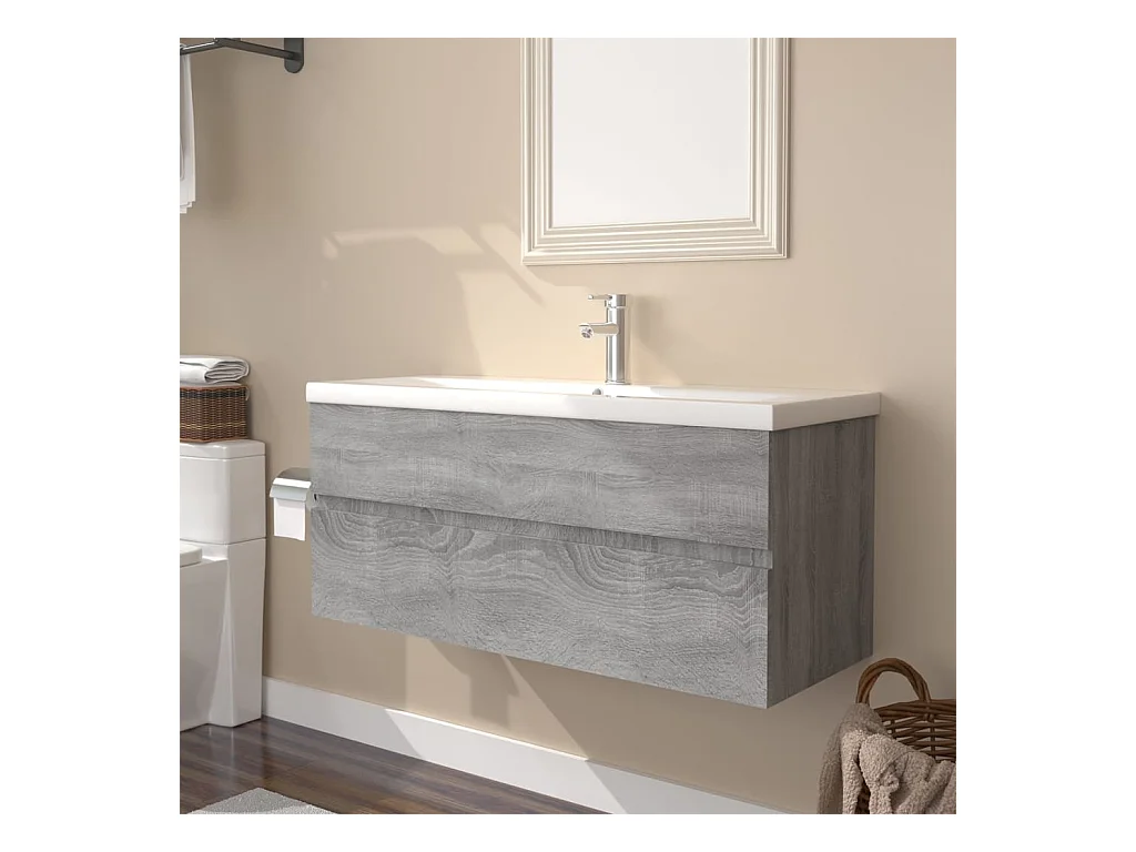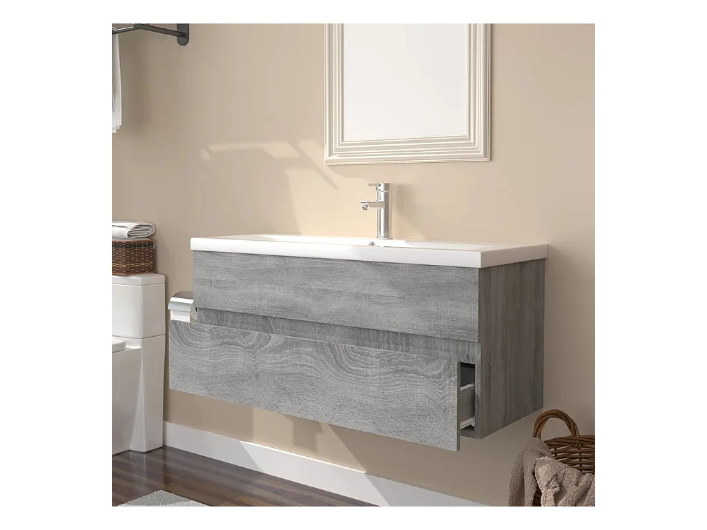 Prolenta Premium - Meuble lavabo avec bassin intégré Sonoma gris Bois d'ingénierie