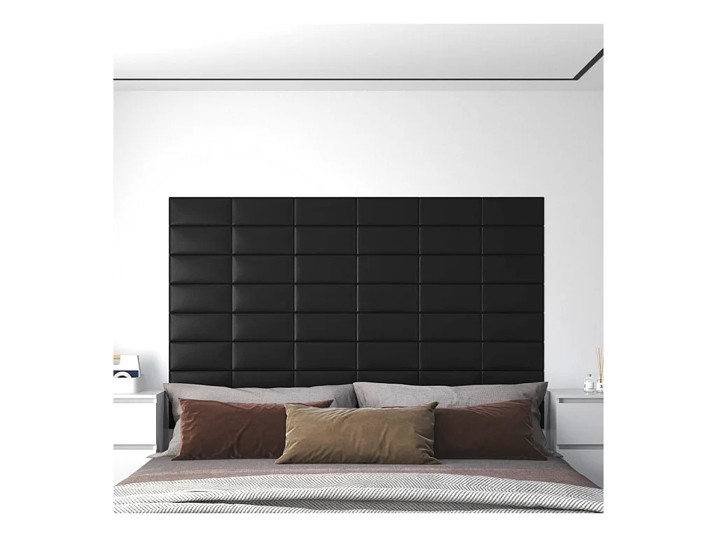 Belkis Panneaux muraux 12 pcs Noir 30x15 cm Similicuir 0,54 m²
