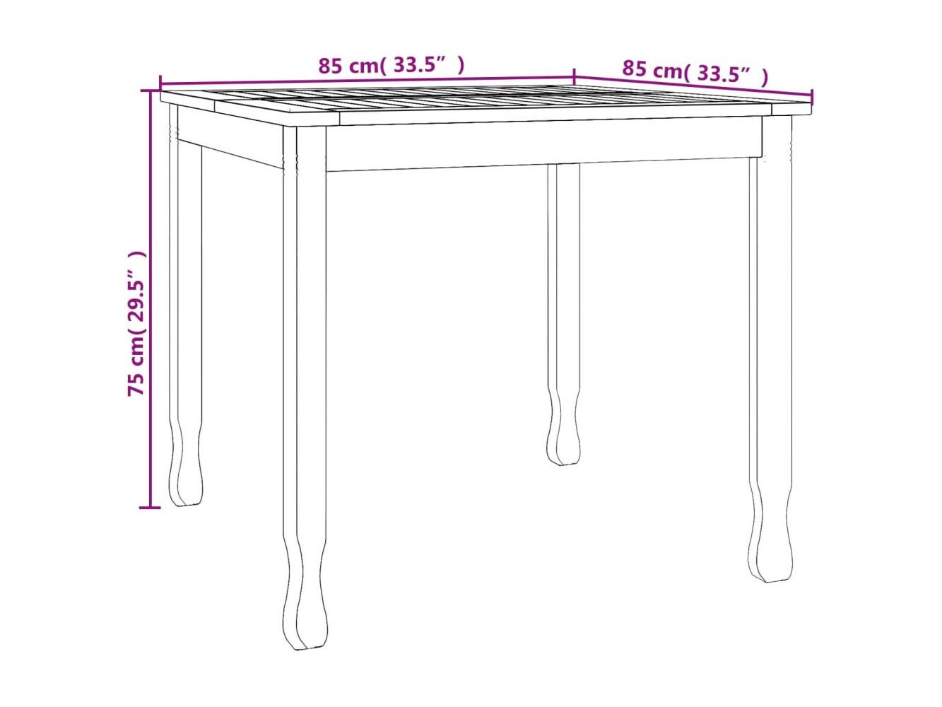 Runaal Table à dîner de jardin 85x85x75 cm Bois massif de teck