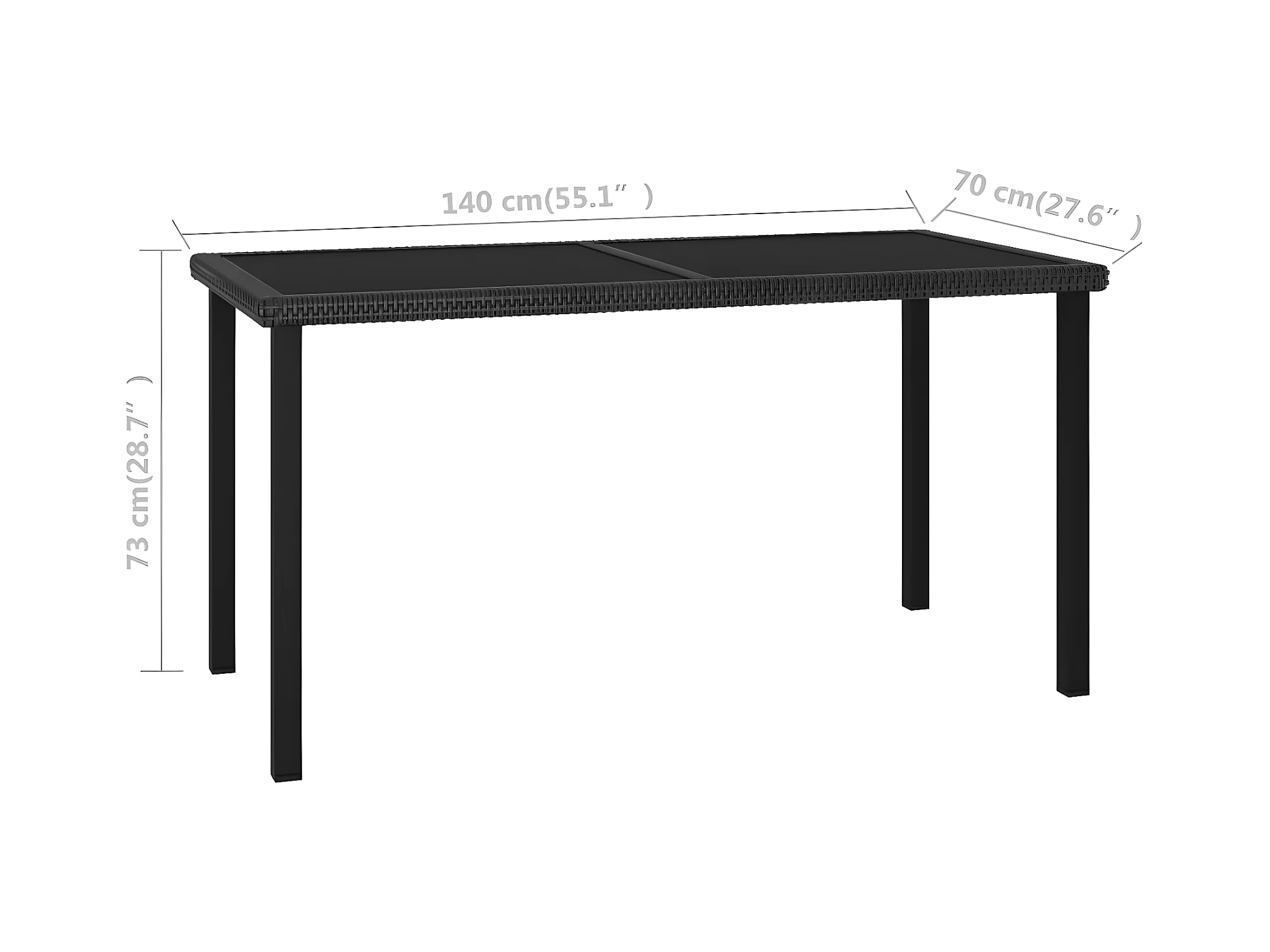 Natalie Hope Table à dîner de jardin Noir 140x70x73 cm Résine tressée