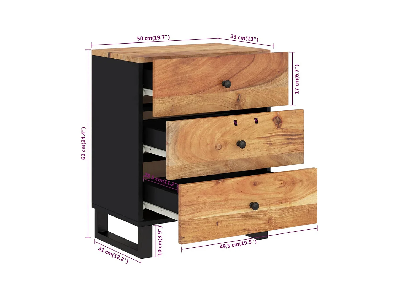 Mie Table de chevet 50x33x62cm Bois d'acacia solide et d'ingénierie
