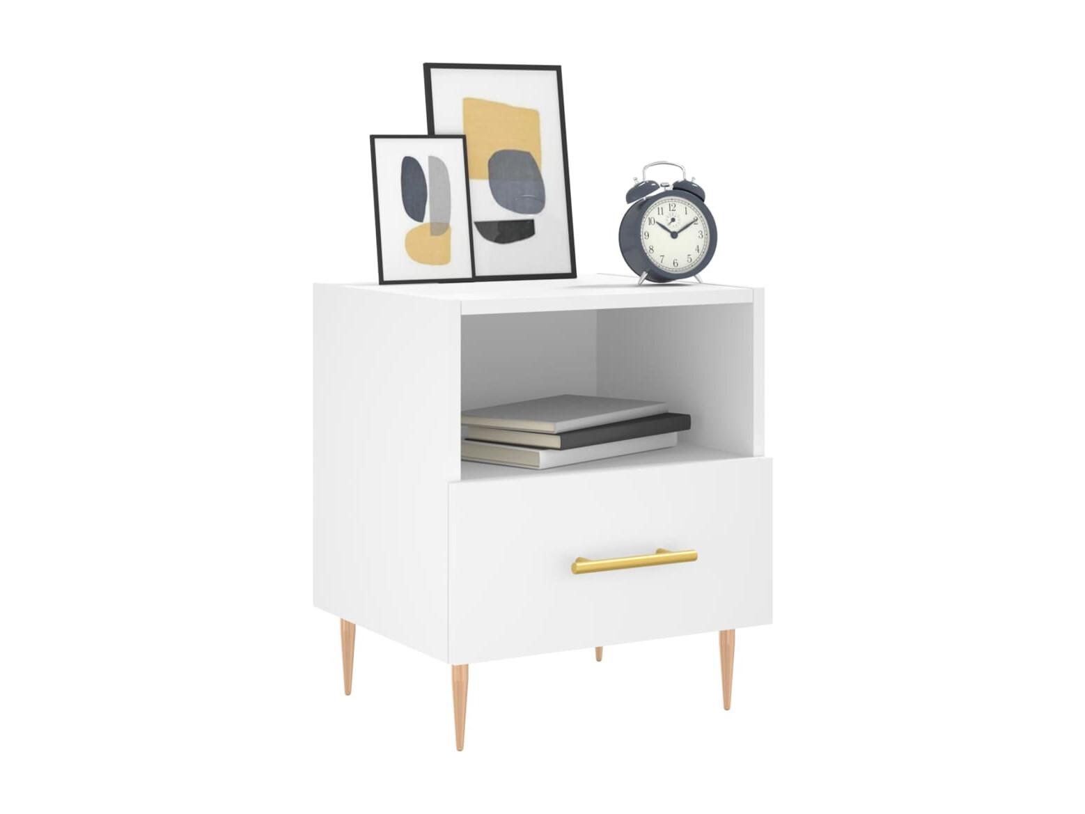 Kendallville Table de chevet avec pieds en bois blanc brillant 40x35x69 cm