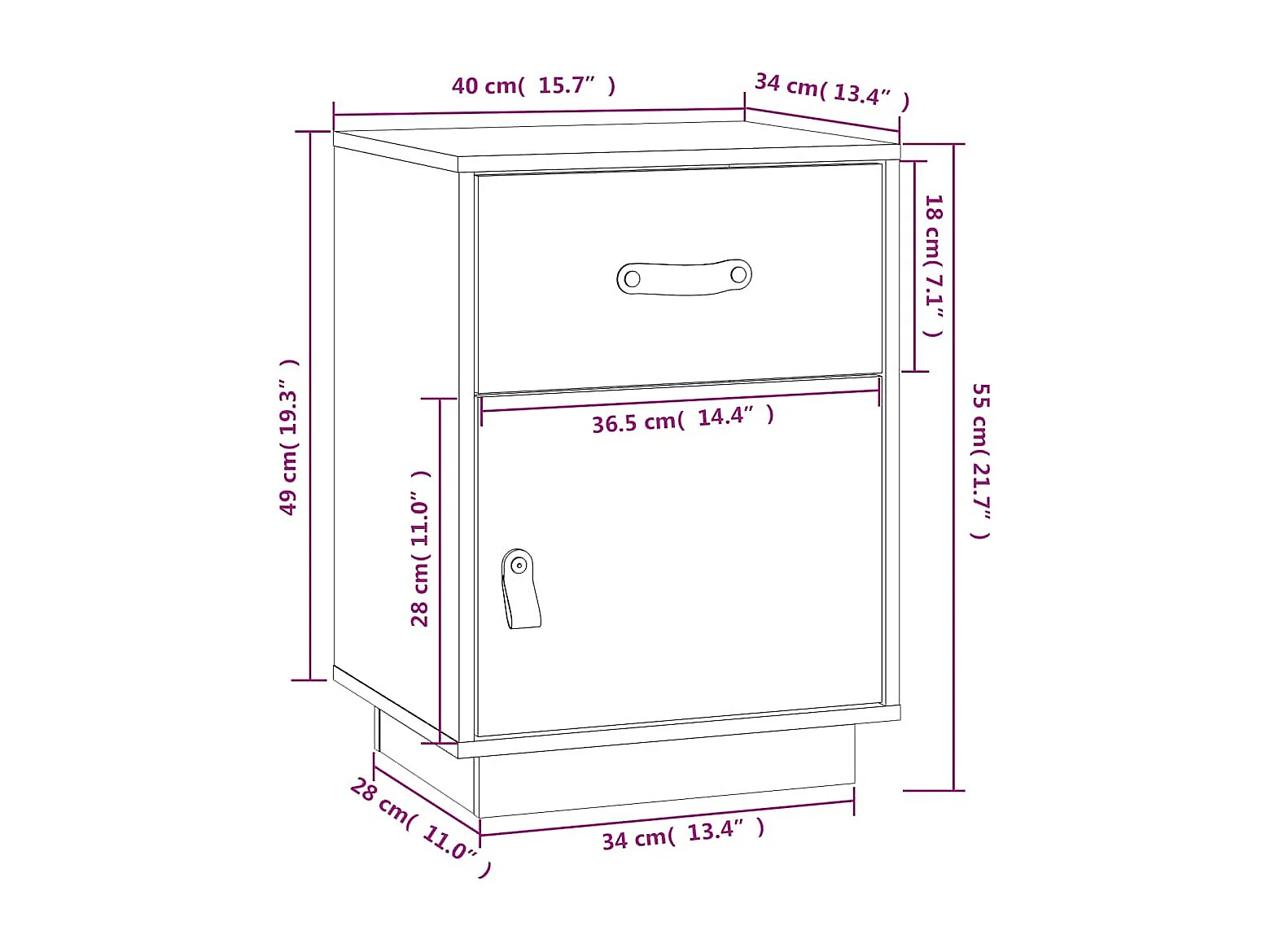 Arthir Table de chevet Marron 40x30x55 cm Bois de pin massif