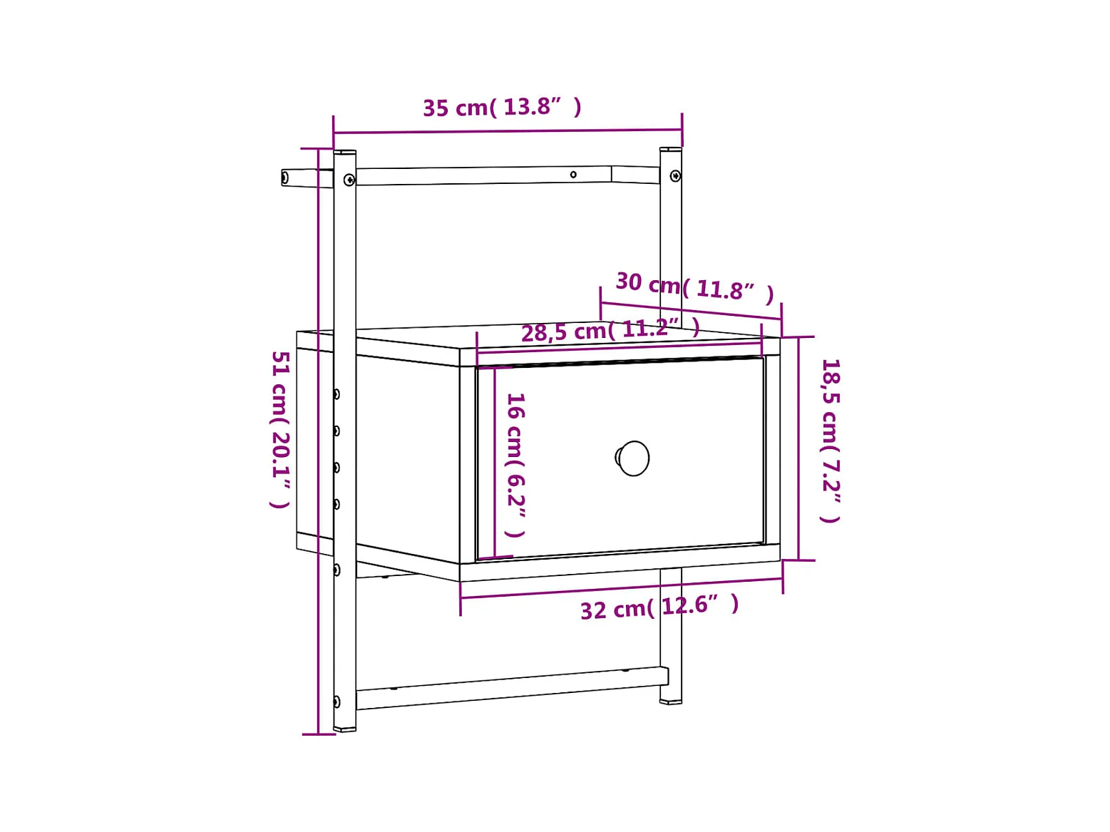 Nyra Table de chevet murale chêne fumé 35x30x51 cm cm
