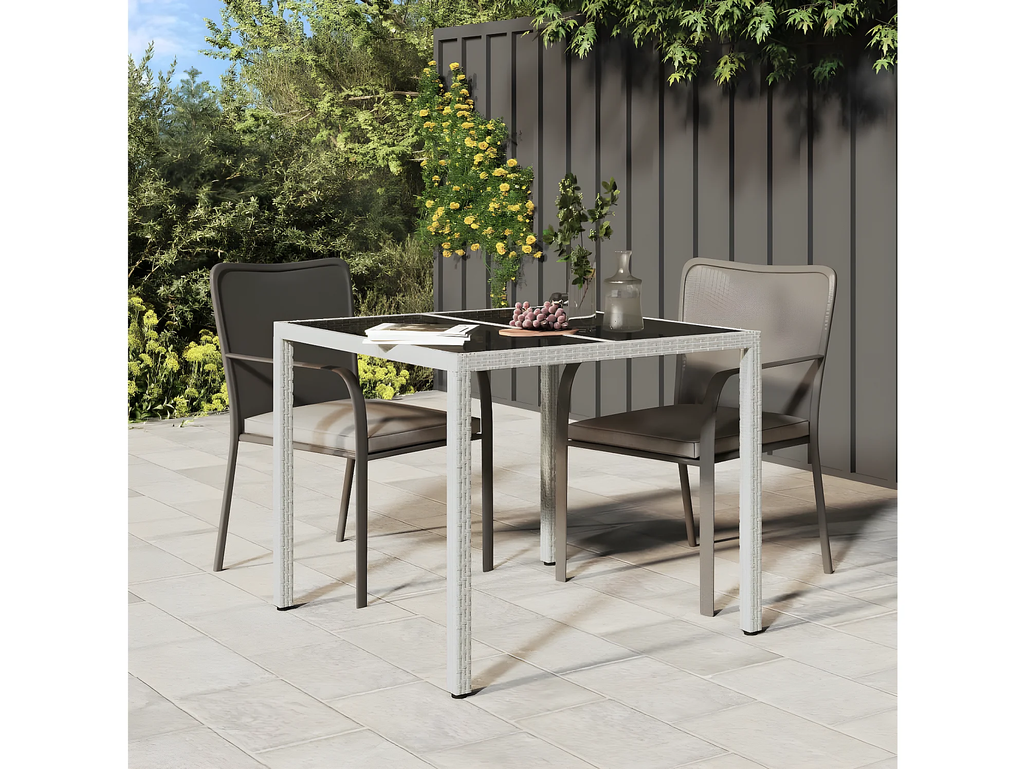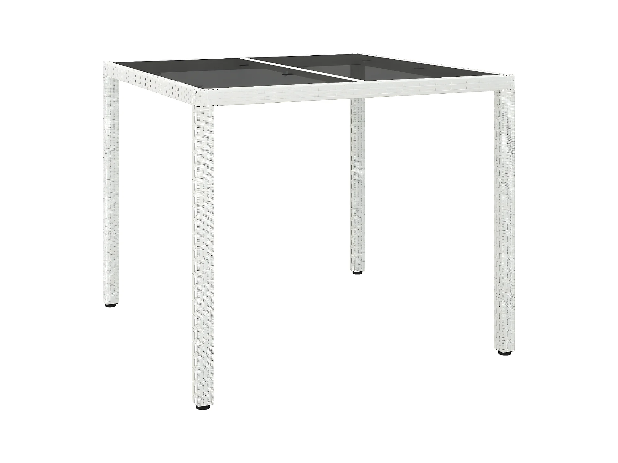 Table de jardin 90x90x75cm Verre trempé et résine tressée Blanc GHR40140