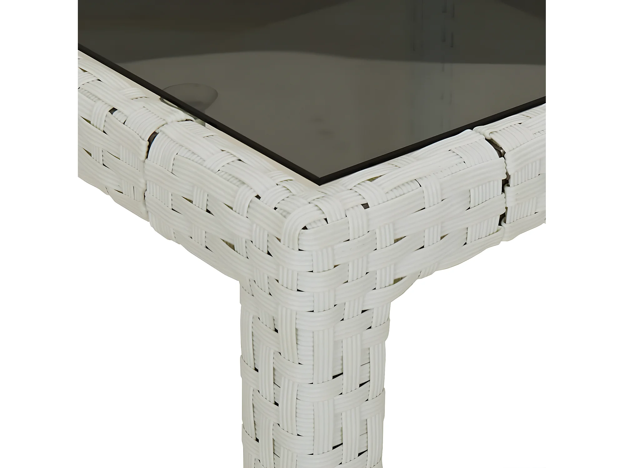 Leila Hope Table de jardin dessus en verre blanc 80x80x75cm résine tressée