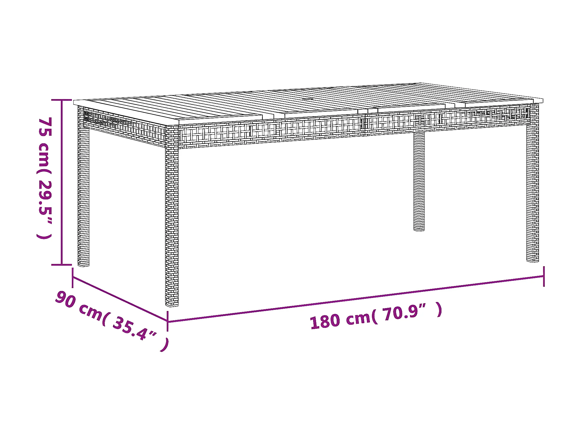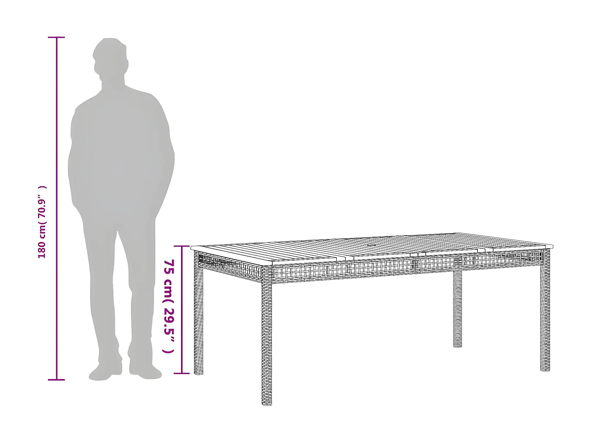 Centreville Table de jardin noir 180x90x75 cm résine tressée et bois acacia