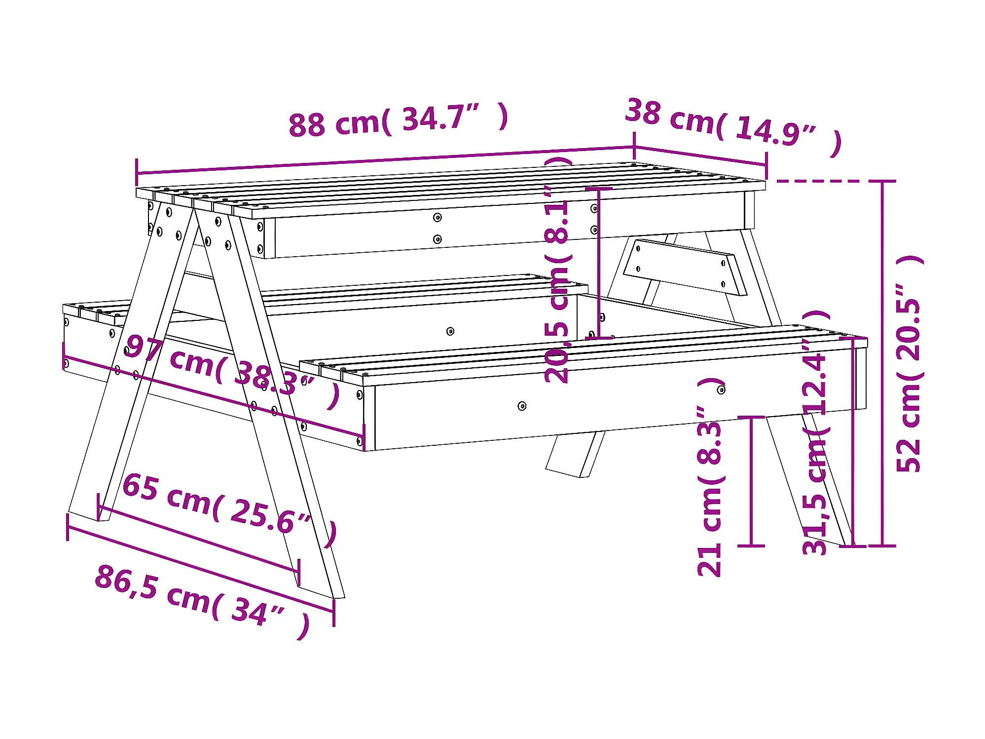 Quindel Table de pique-nique pour enfants cire marron bois massif pin