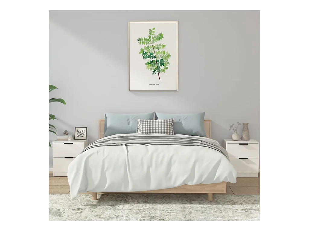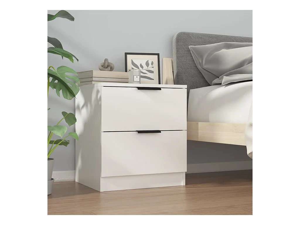 Invel Tables de chevet 2 pcs Blanc Bois d'ingénierie