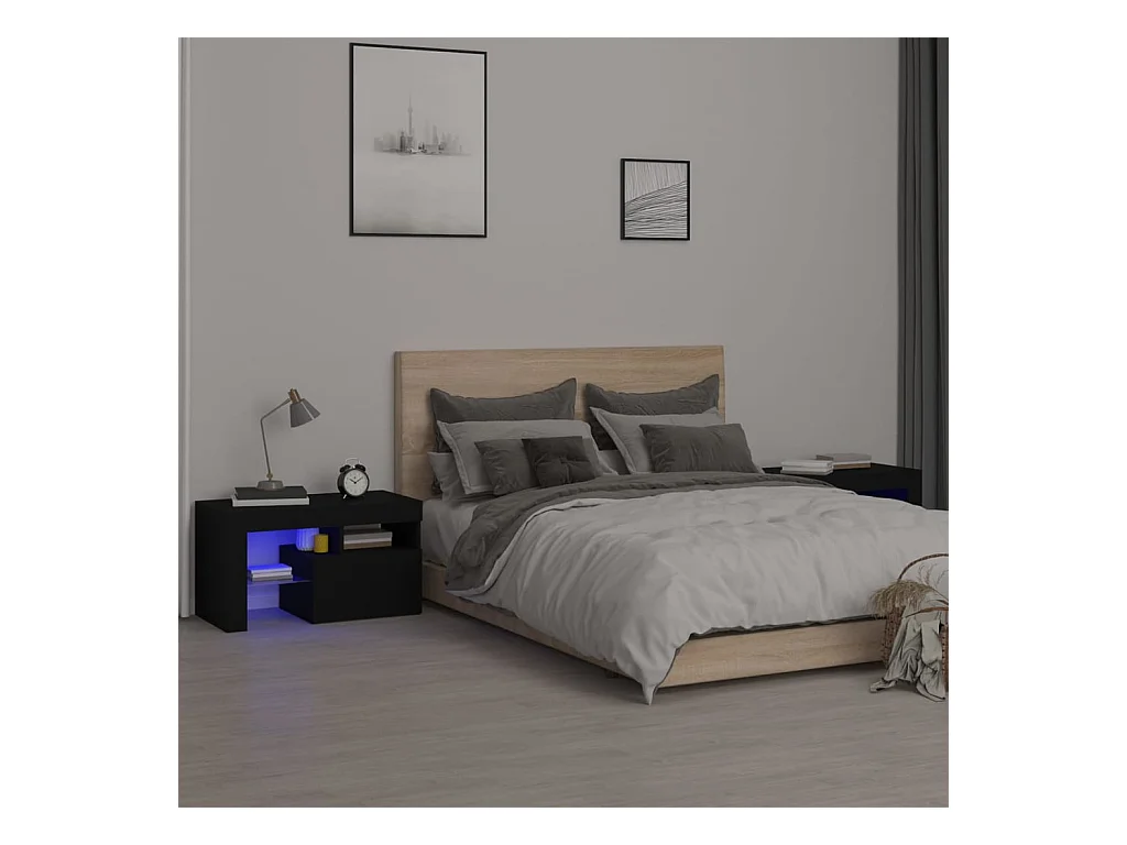 Zutphen Tables de chevet 2 pcs et lumières LED Noir 70x36,5x40 cm
