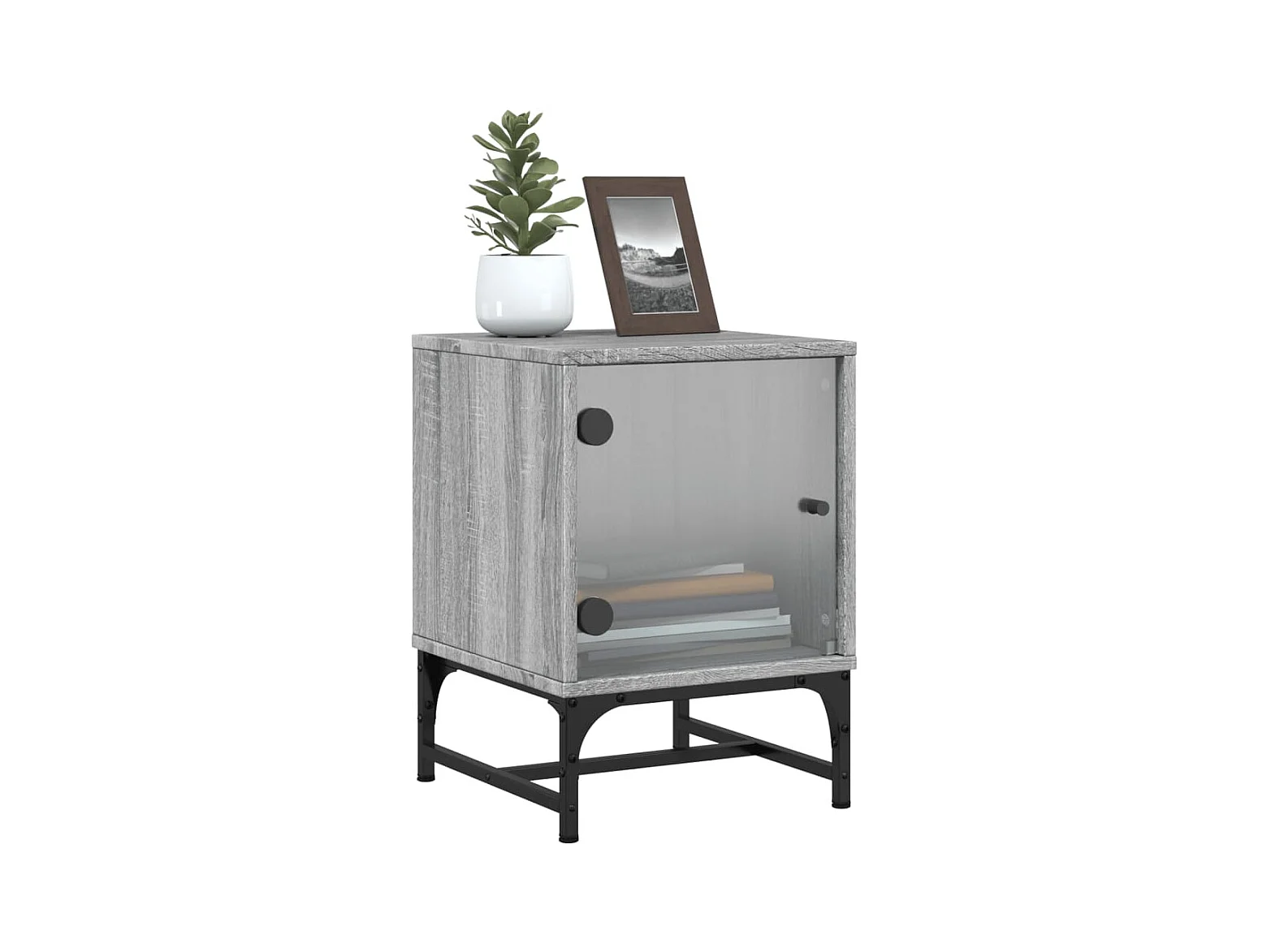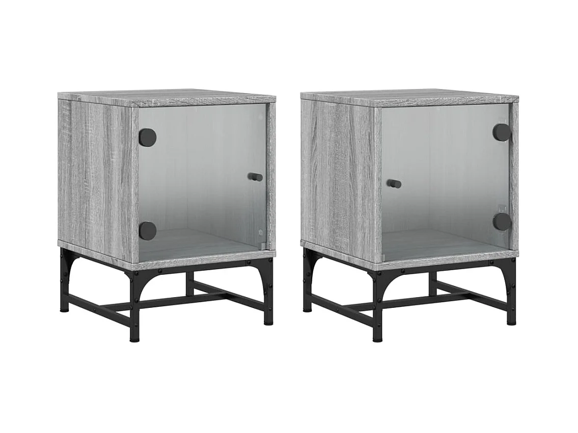 Nihat Tables de chevet et portes vitrées 2pcs sonoma gris 35x37x35cm