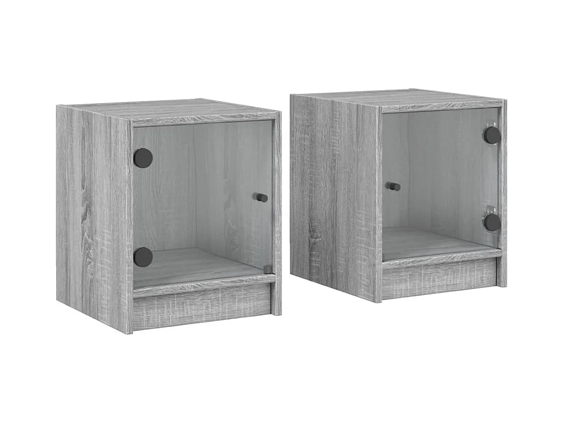 Nihat Tables de chevet et portes vitrées 2pcs sonoma gris 35x37x35cm