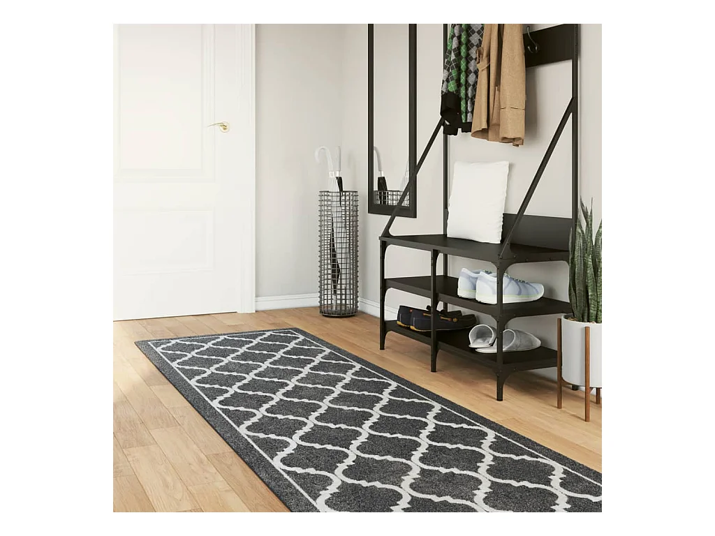 Elsje Tapis lavable noir et blanc 80x300 cm antidérapant