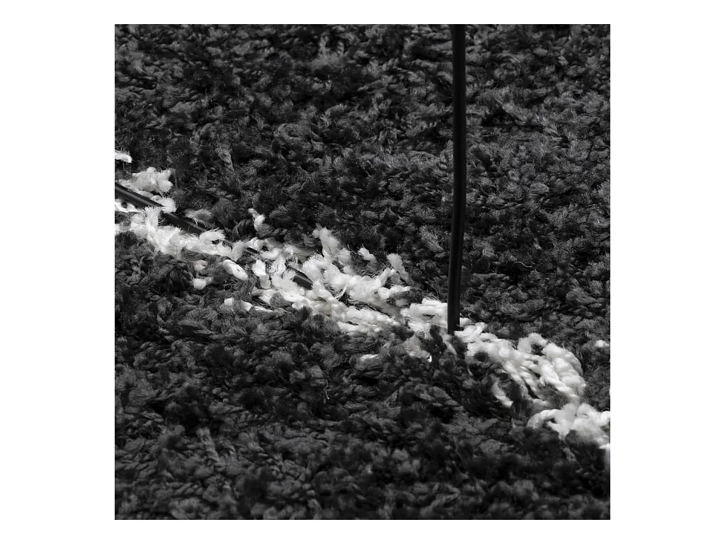 Vito Tapis shaggy à poils longs moderne noir et crème 120x120 cm