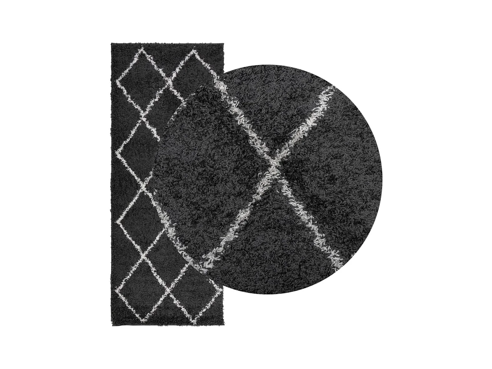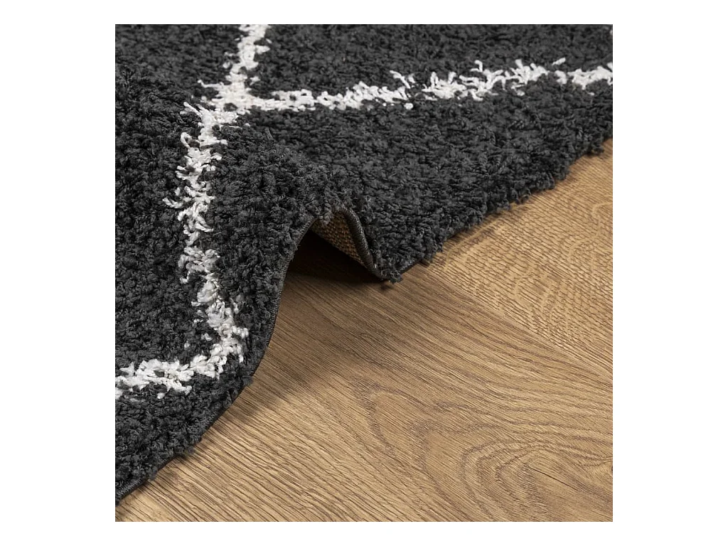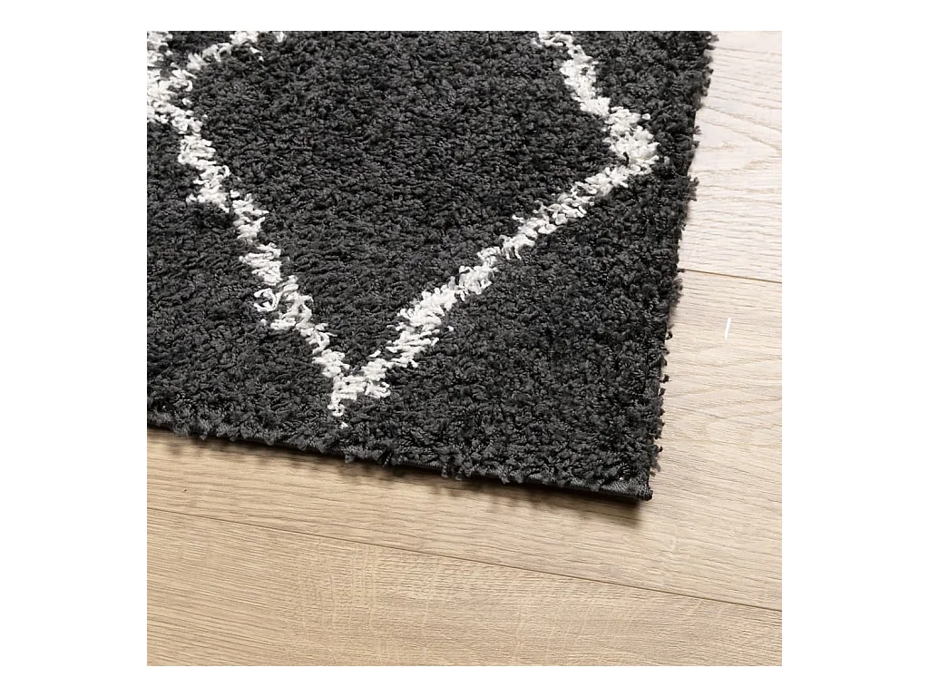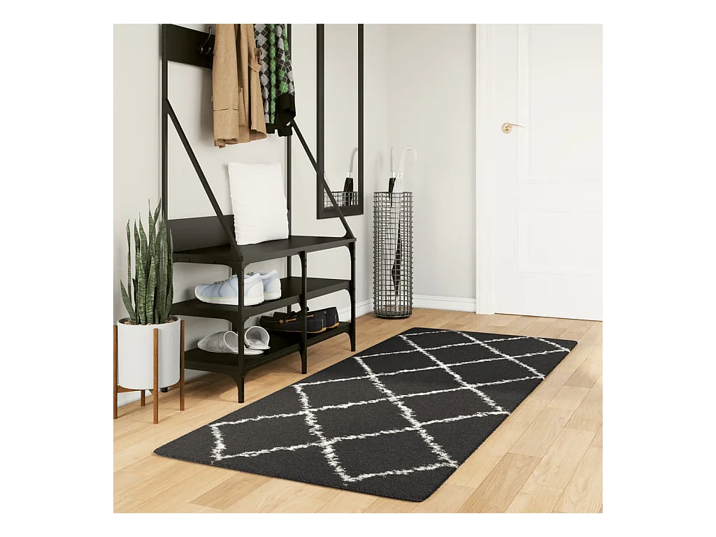 Vito Tapis shaggy à poils longs moderne noir et crème 80x200 cm