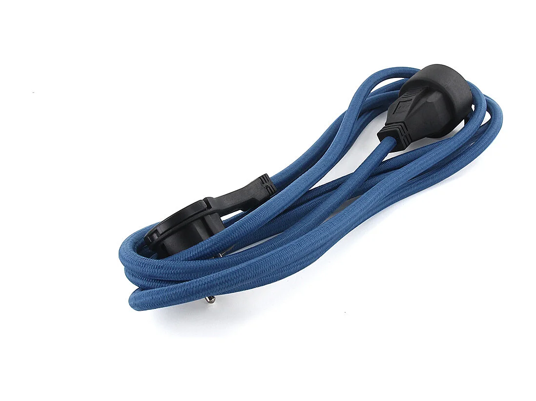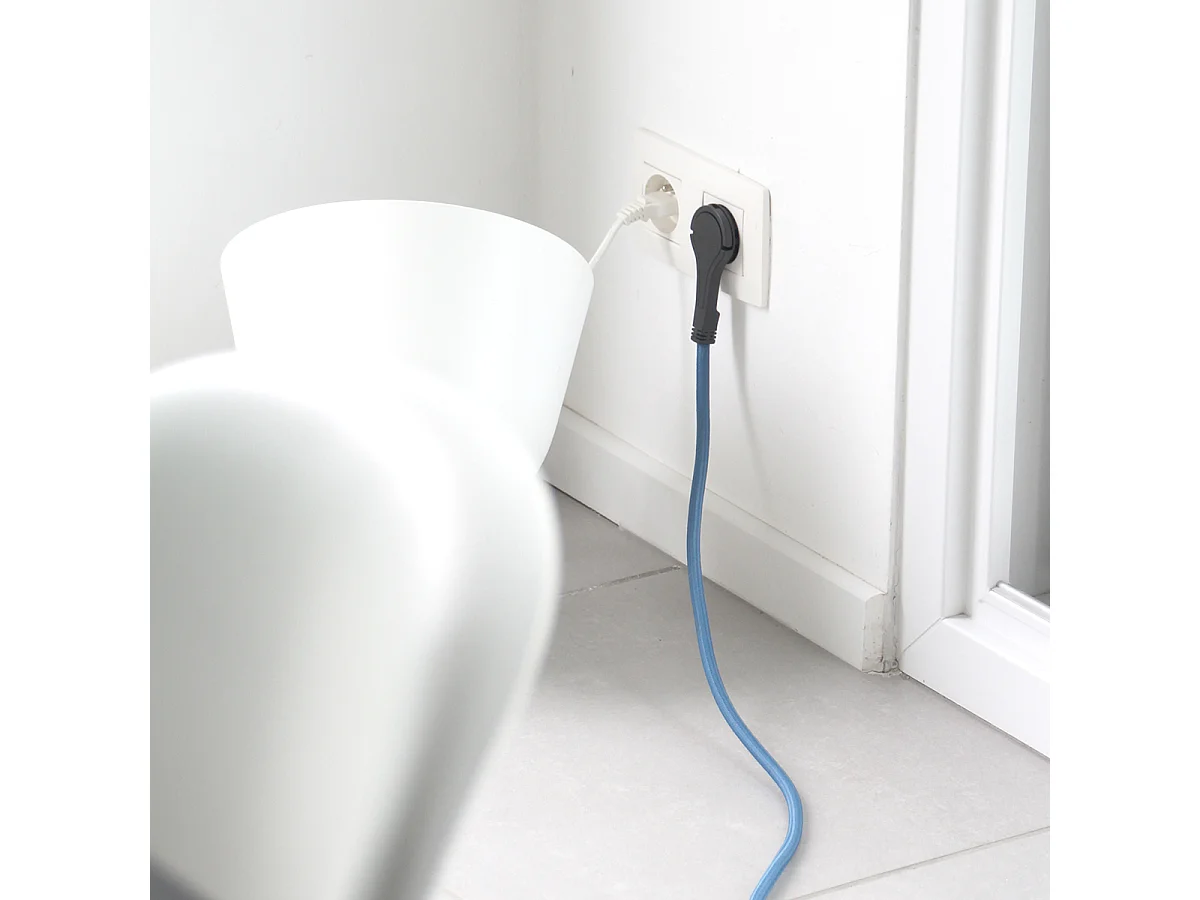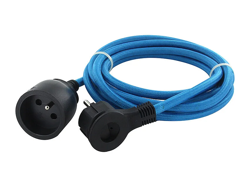 Prolongateur textile fiche plate 3m - bleu clair et noir - Chacon