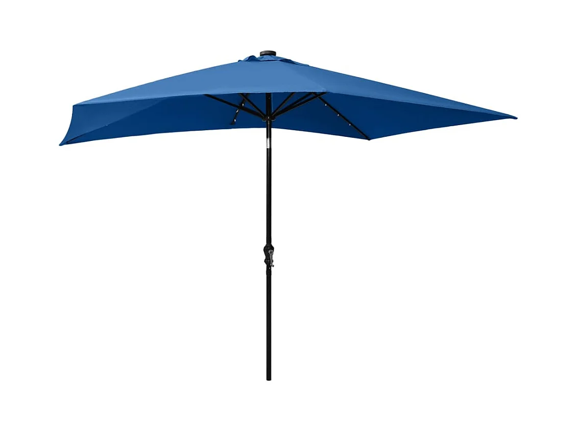 Prudence Parasol de jardin avec LED et mât en acier bleu azuré 2x3 m