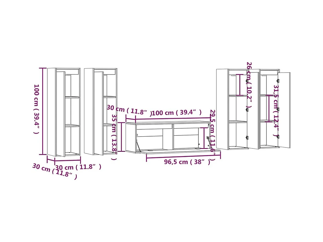 Pryll Meubles TV 5 pcs Bois massif de pin