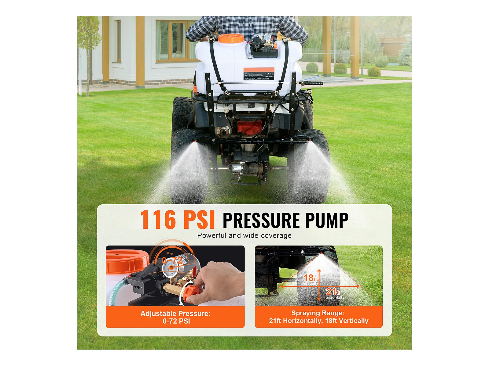 Pulvérisateur pour VTT SucceBuy 60 L 12 V, Pulvérisateur Mauvaises Herbes Jardin à Pompe, Réglable 0-72 PSI, Blanc