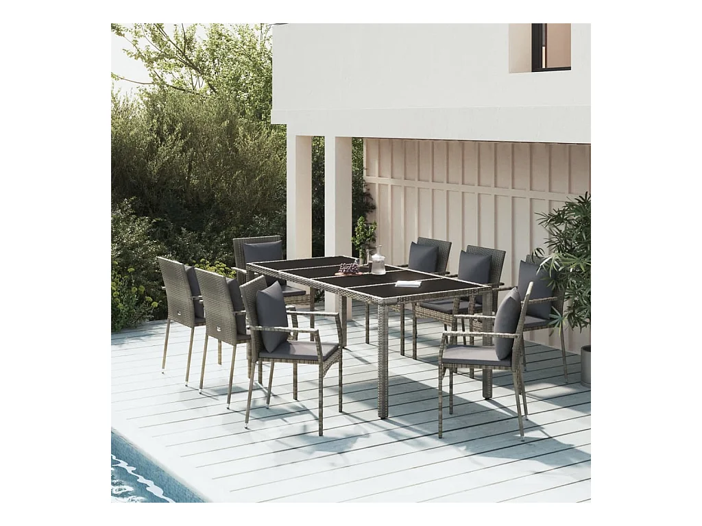 Serafino Ensemble à manger de jardin avec coussins 9 pcs Gris
