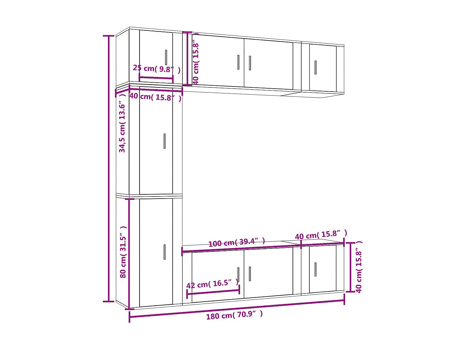 Qendria Ensemble de meubles TV 7 pcs Chêne fumé Bois d'ingénierie