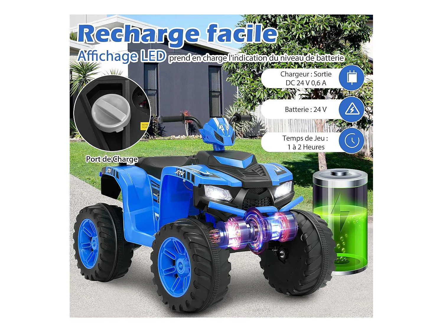 Quad Électrique Enfant 24V avec Musique, Lumières LED, Pédale & Démarrage Lent - Vitesse 2,8/5 km/h - Charge 35kg - 3-8 Ans (Bleu)