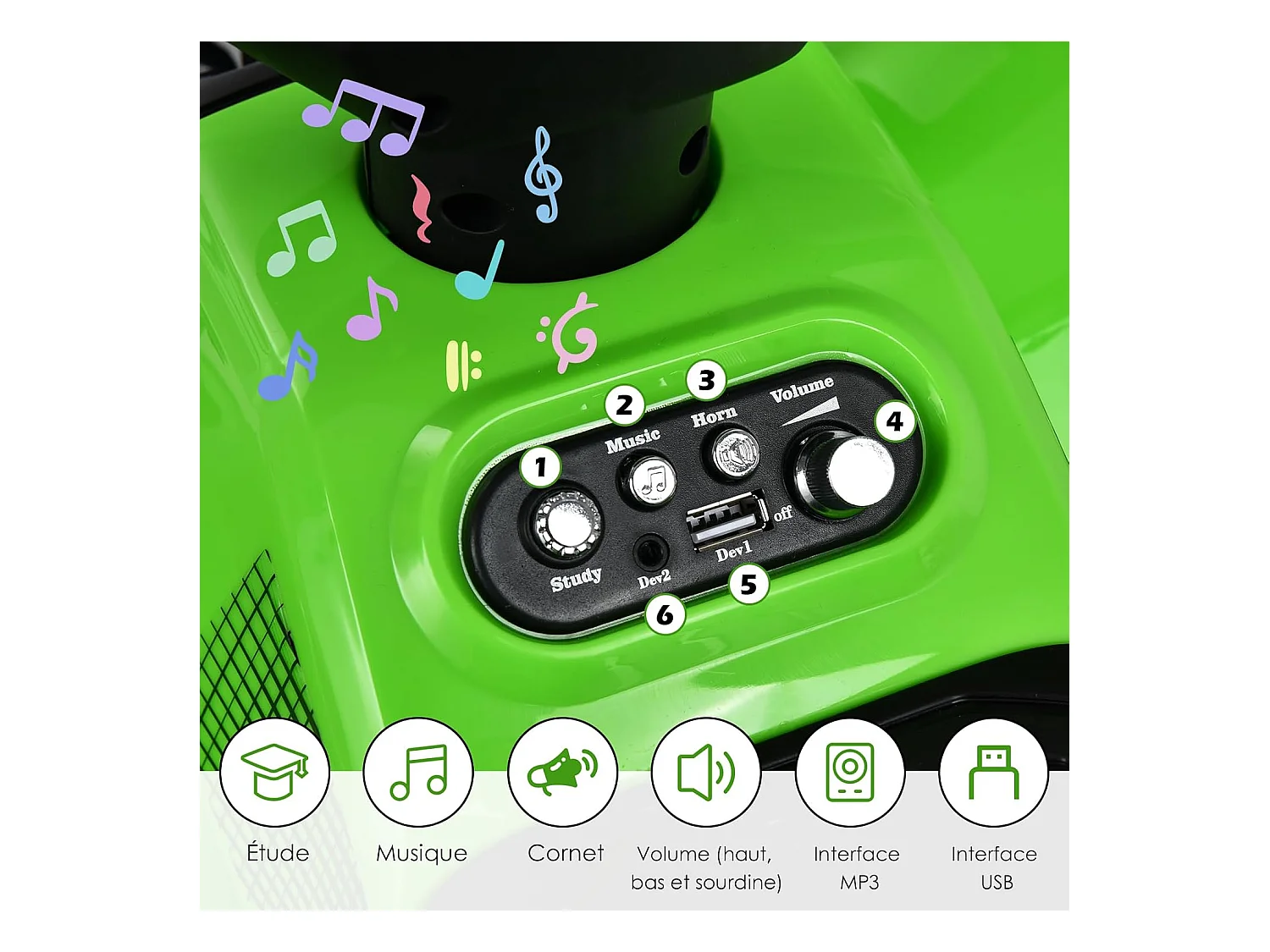 12V Quad Électrique Enfant avec Phares & Musique, Voiture Électrique avec Pédale & Guidon Antidérapant, 2,2/4,3 KM/H, Charge 35kg pour 3-8 Ans (Vert)