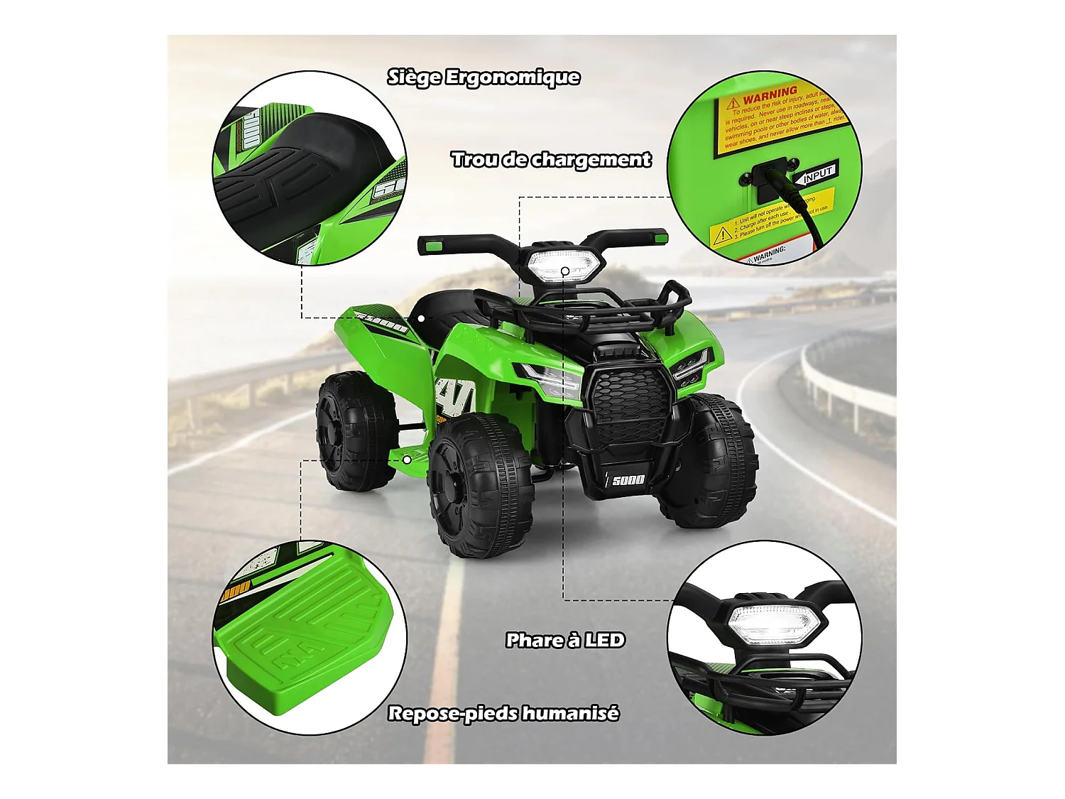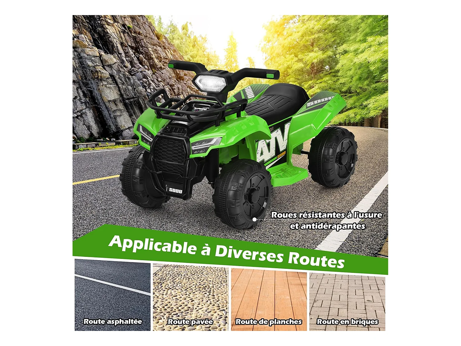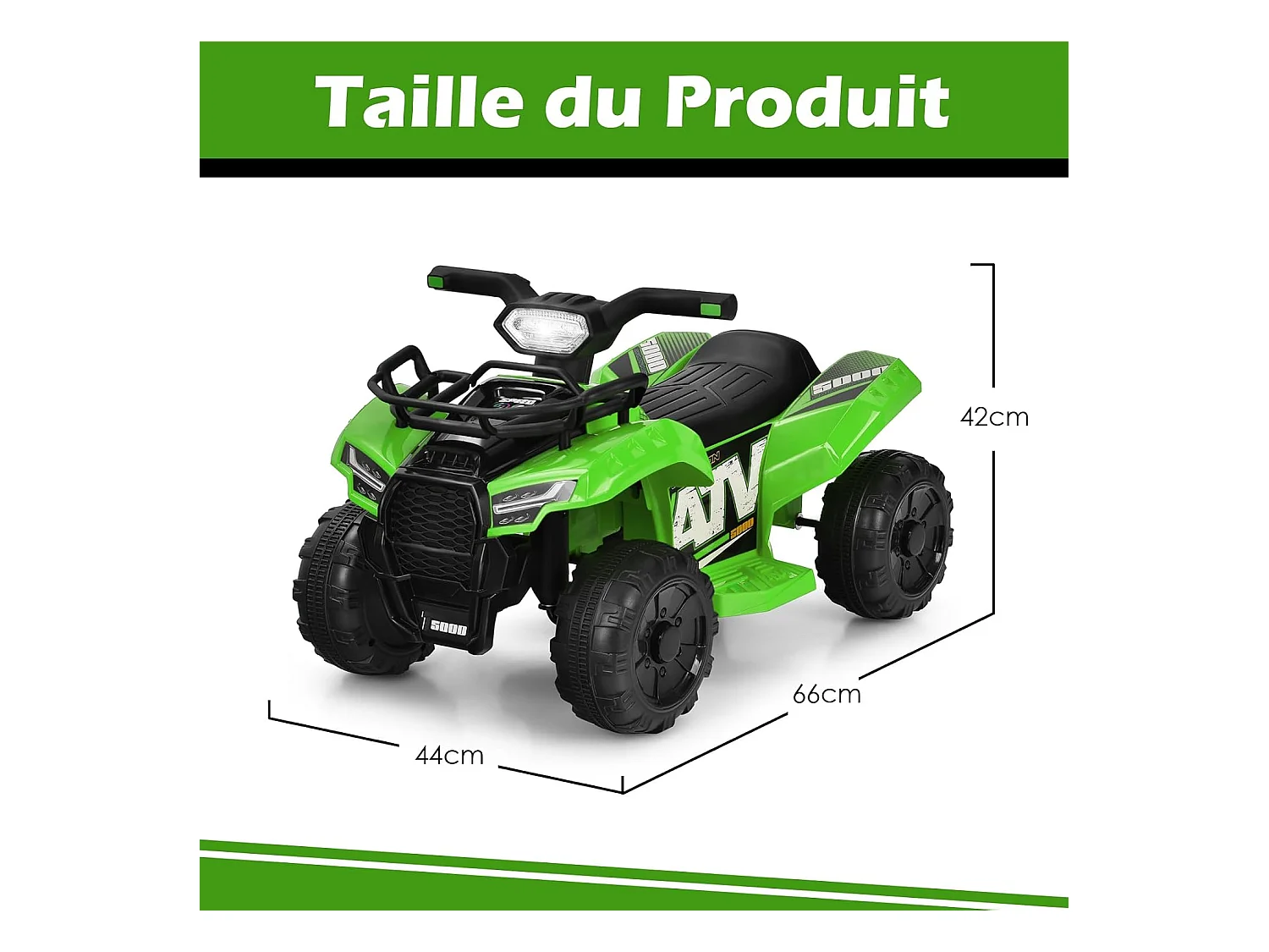 Quad Électrique Enfants avec 4 Roues Antidérapantes, Voiture Électrique Enfants avec Musique, Klaxon, Lumière LED, Guidon Lisse, Charge 20 KG 18-36 Mois (Vert)