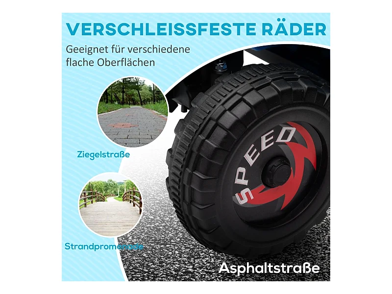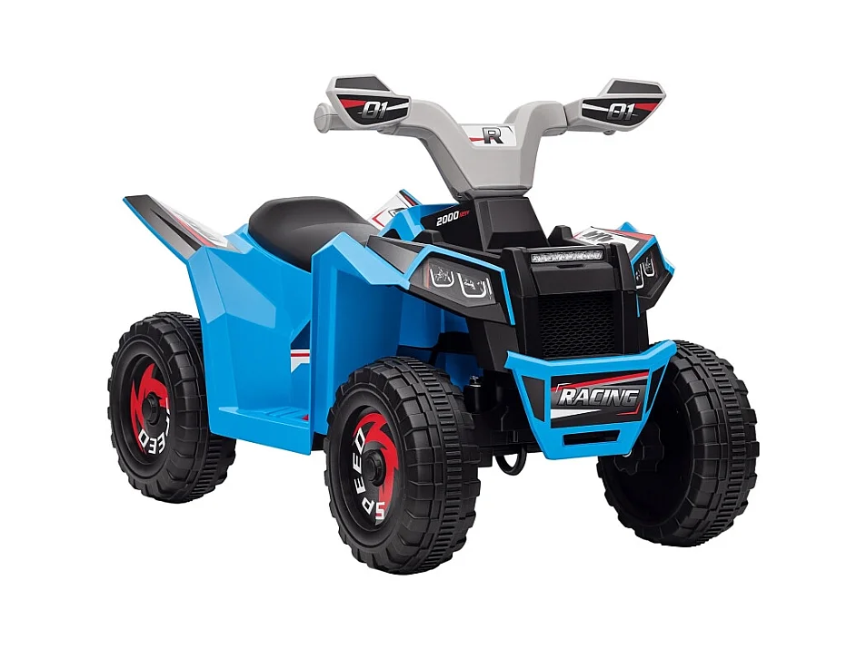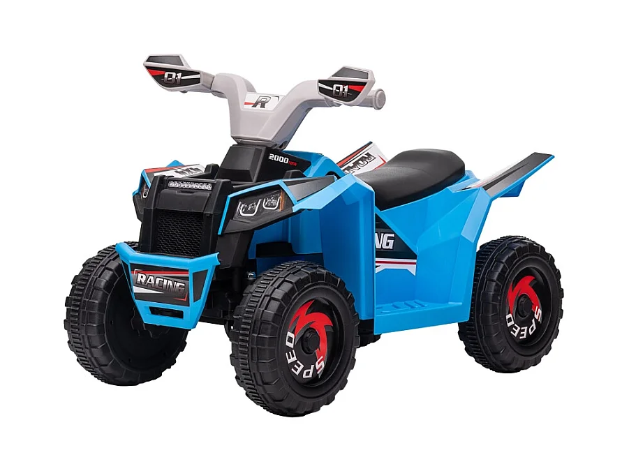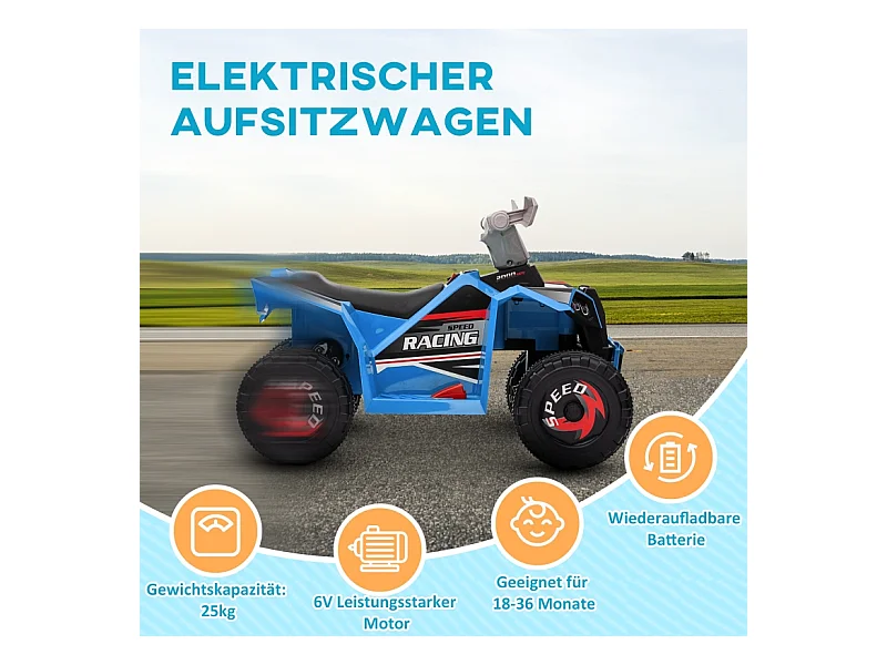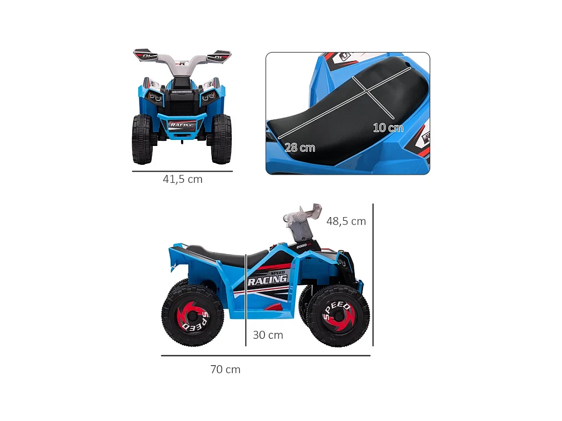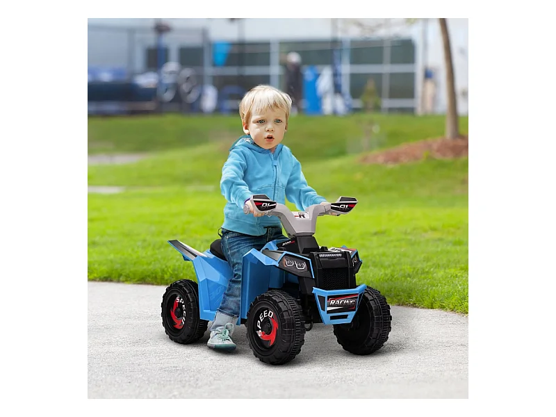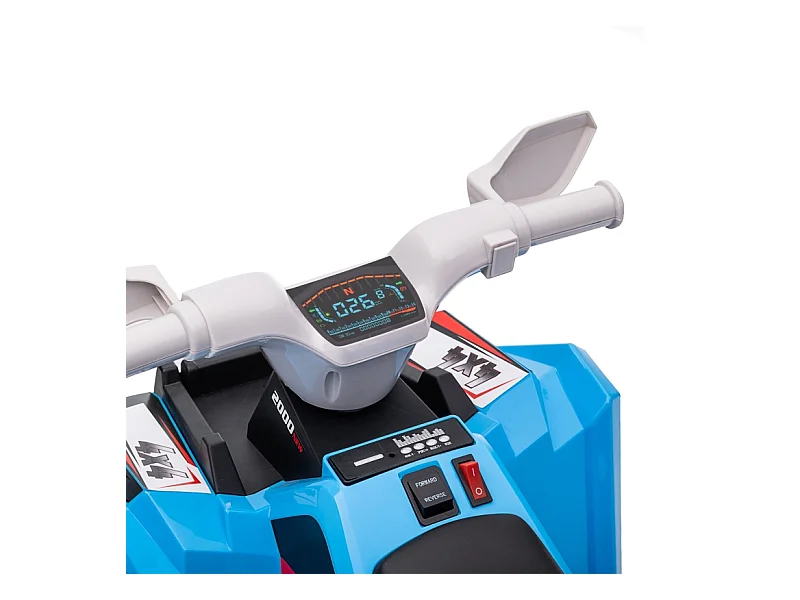 Quad électrique pour enfants, vitesse de 2,5 km/h, marche avant/arrière, métal, bleu (70x41.5x48.5 cm)