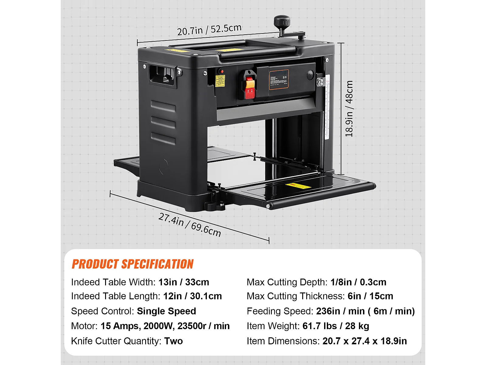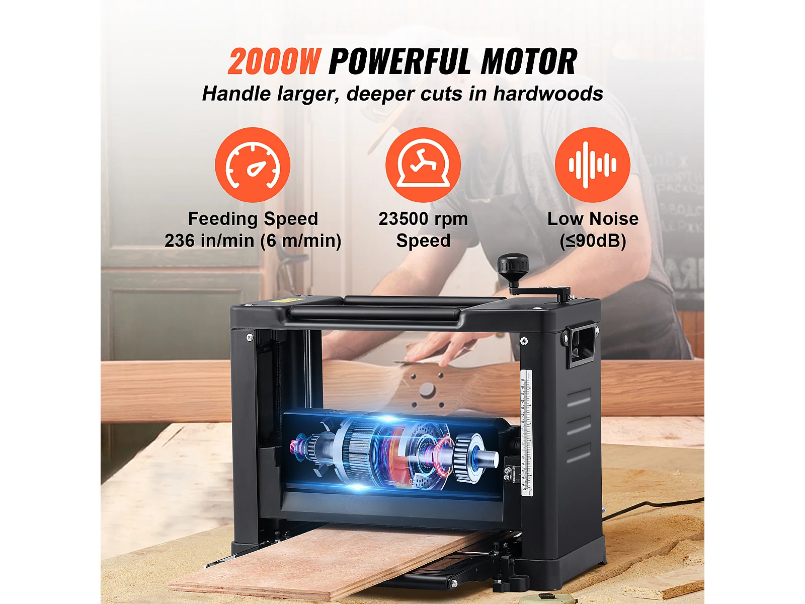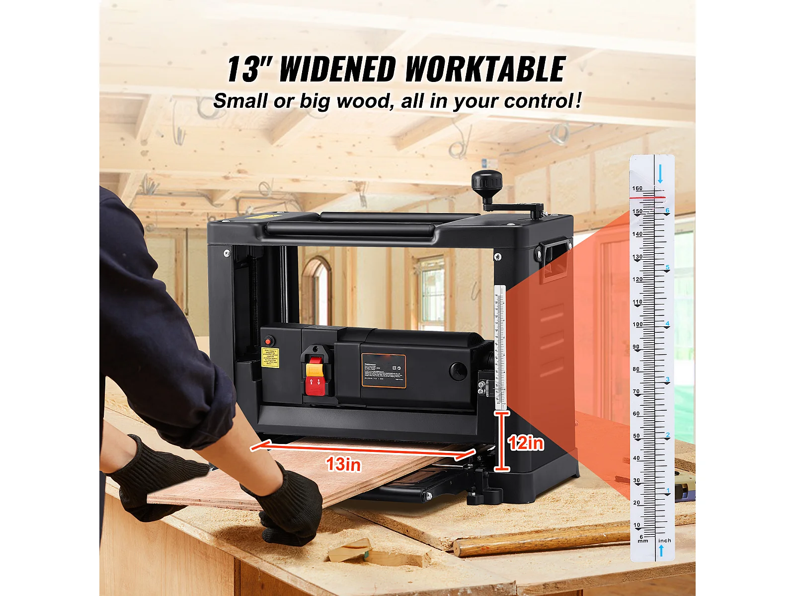 Raboteuse D'épaisseur SucceBuy de 13 Pouces, 1800 W, 15 A, Deux Lames pour le Travail du Bois